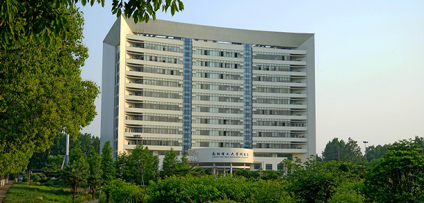 校徽上部代表一轮冉冉升起的太阳,下方是一本打开的书。太阳的中心(字母“N”)像一扇门,预示着学校的明天更加辉煌,下方以一本书(字母“Y”)作底,除说明学校的教育行业特征外,还表明教书育人、培养社会需要的高素质人才的办学思想。图形周围环绕学校的英文全称,既增强了识别,又对整个标志图形进行了补充。校徽下部是毛体校名。