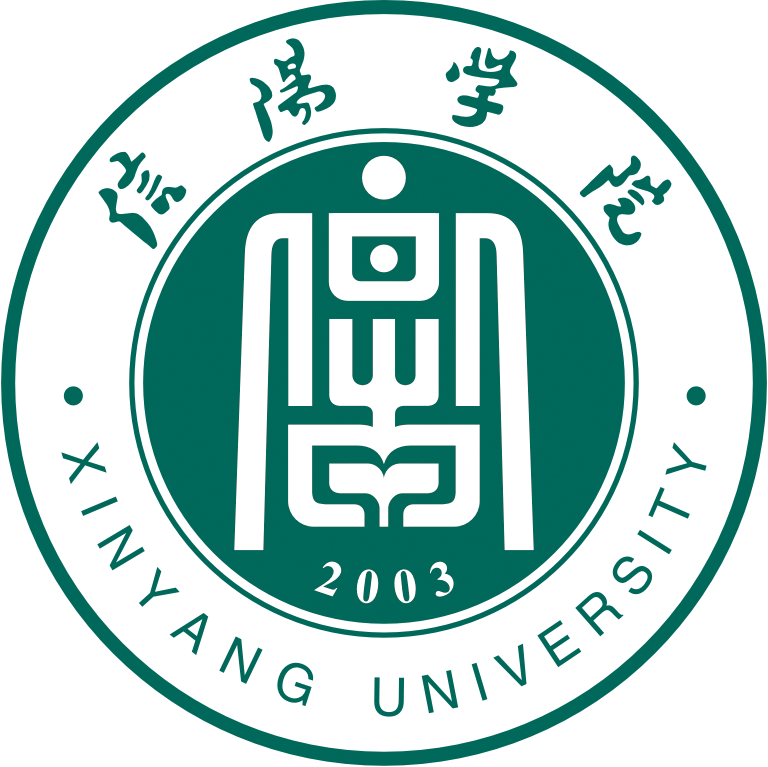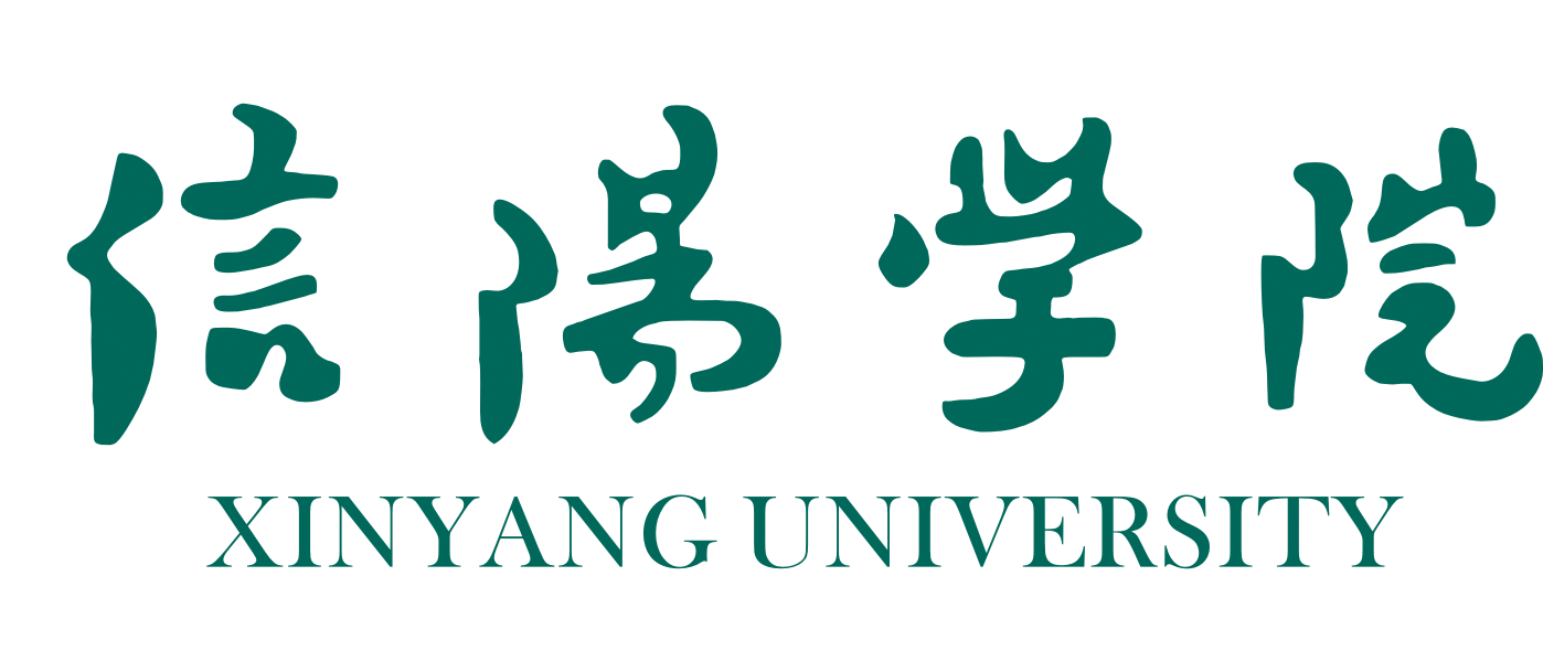 外环内容为学校中英文对照规范名称。上部分为学校全称,校名汉字取自鲁迅墨宝,集字而成,下部分文字为校名英文名称。寓意信阳学院传承历史,开放包容,放眼世界的思想。