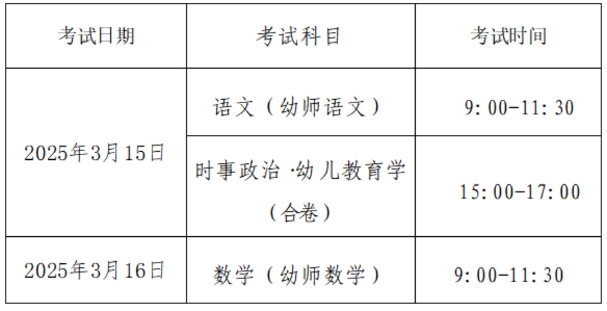 (2)教育类专业文化课考试科目及时间为: