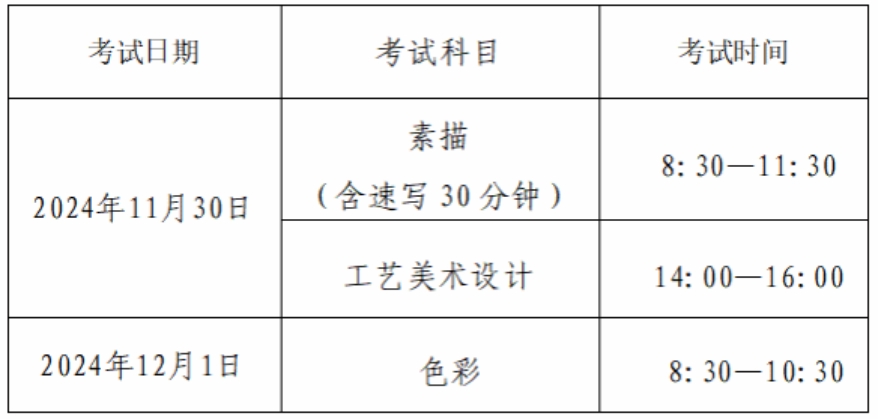 美术类专业考试与普通高招艺术类专业省统考统一安排,考试时间安排如下: