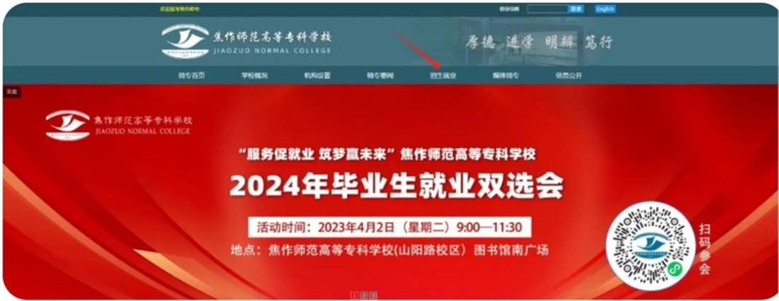 一、登录我校官方网站:http://www.jzsz.edu.cn/,点击“招生就业”进入招生就业处网站导航页面。