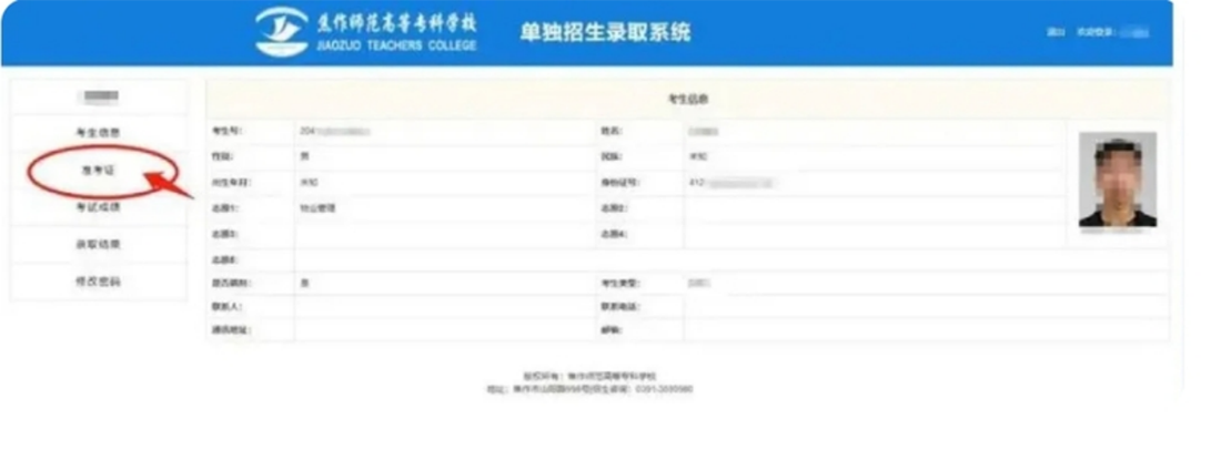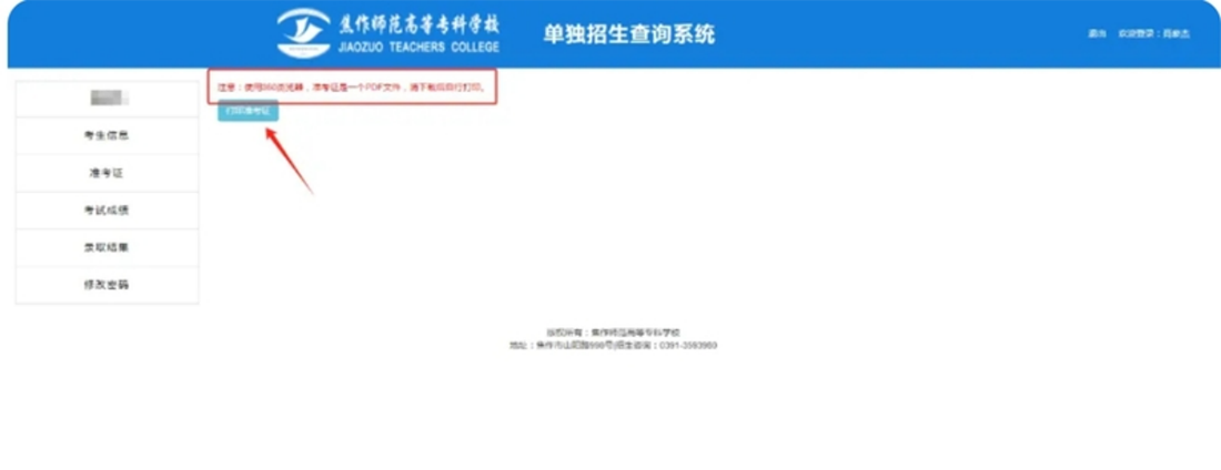 焦作师专2024年单招准考证打印流程