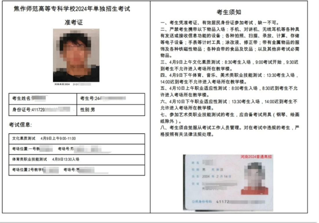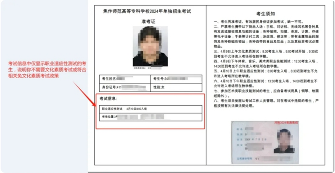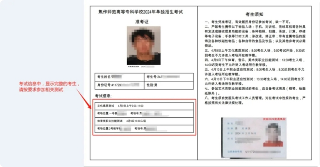 关于准考证信息的说明