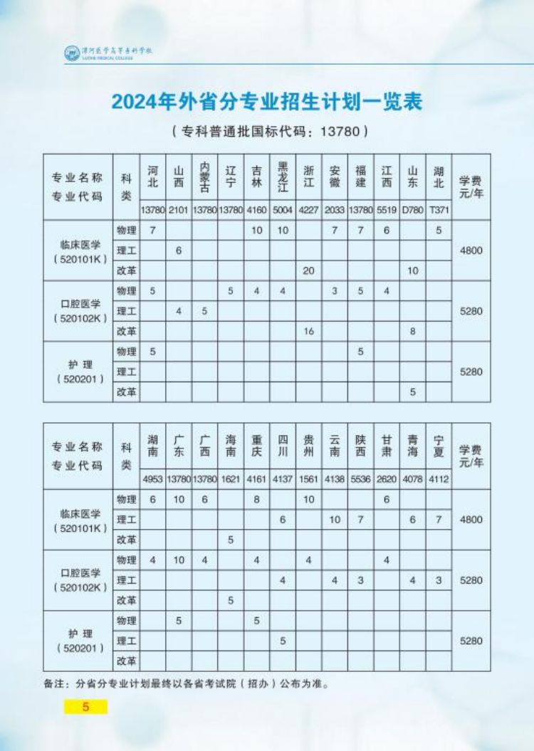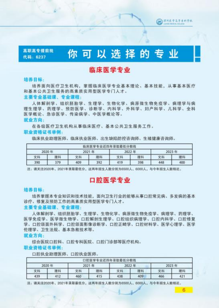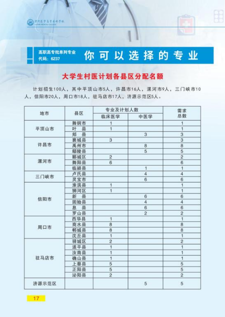 2024年 : 漯河医学高等专科学校-2024年招生专业所在《招生之友》页码及专业代号详情一览表