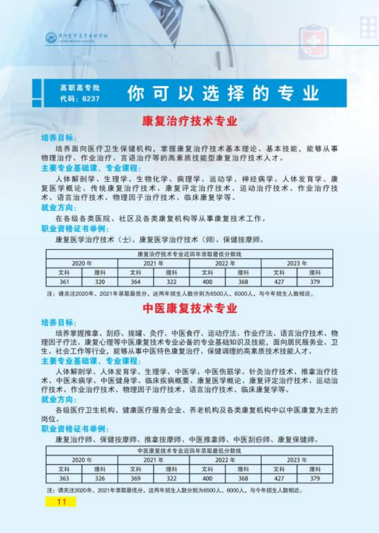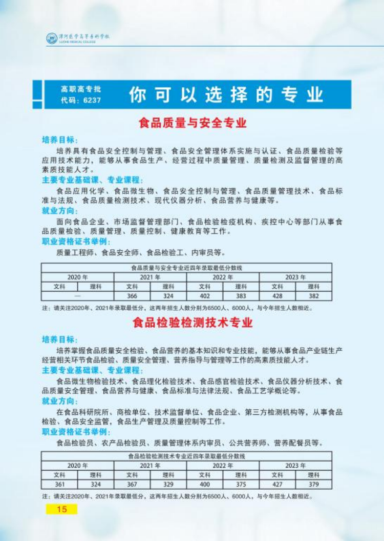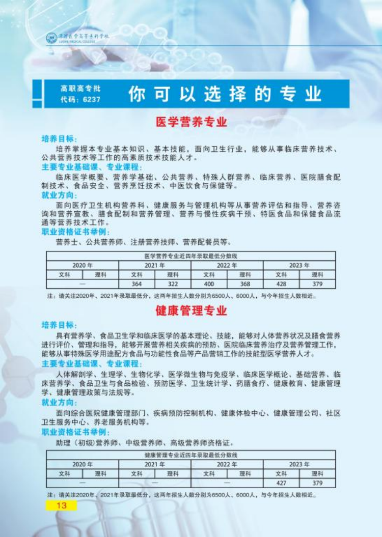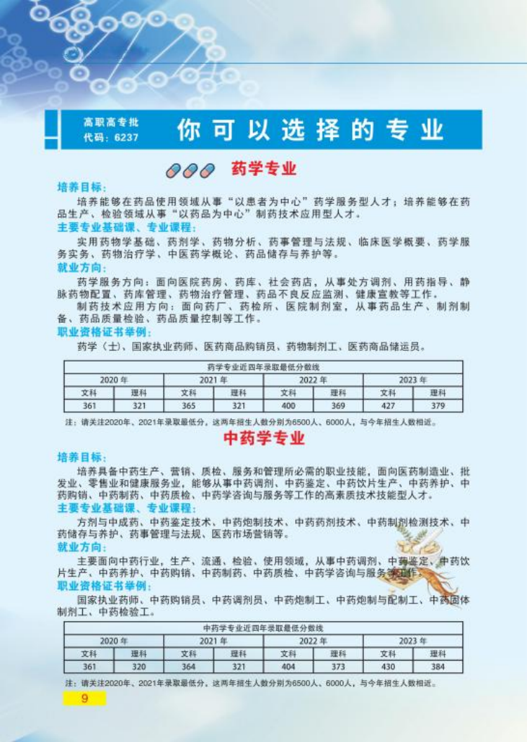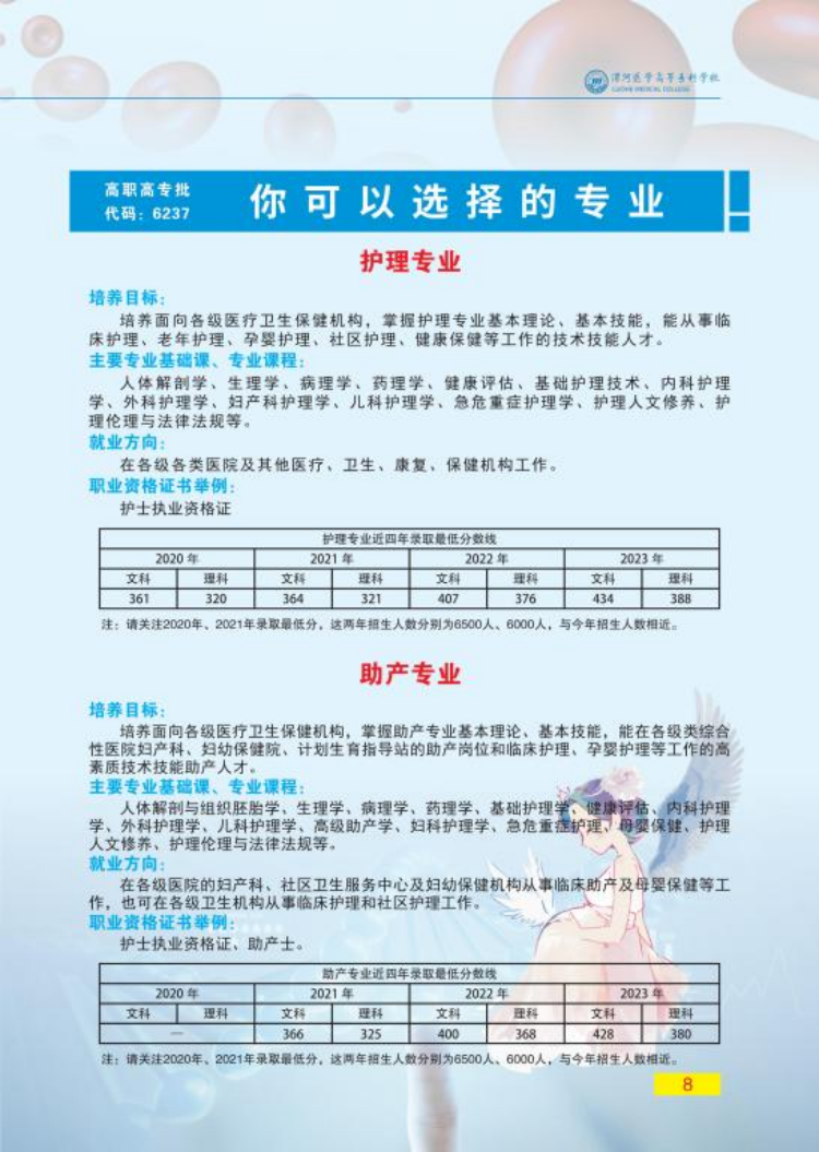 2023年 : 漯河医学高等专科学校2023年招生专业所在《招生之友》页码及专业代号详情一览表