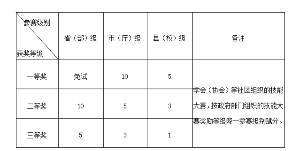 第十六条 技能竞赛成绩及职业资格等级证书赋分办法