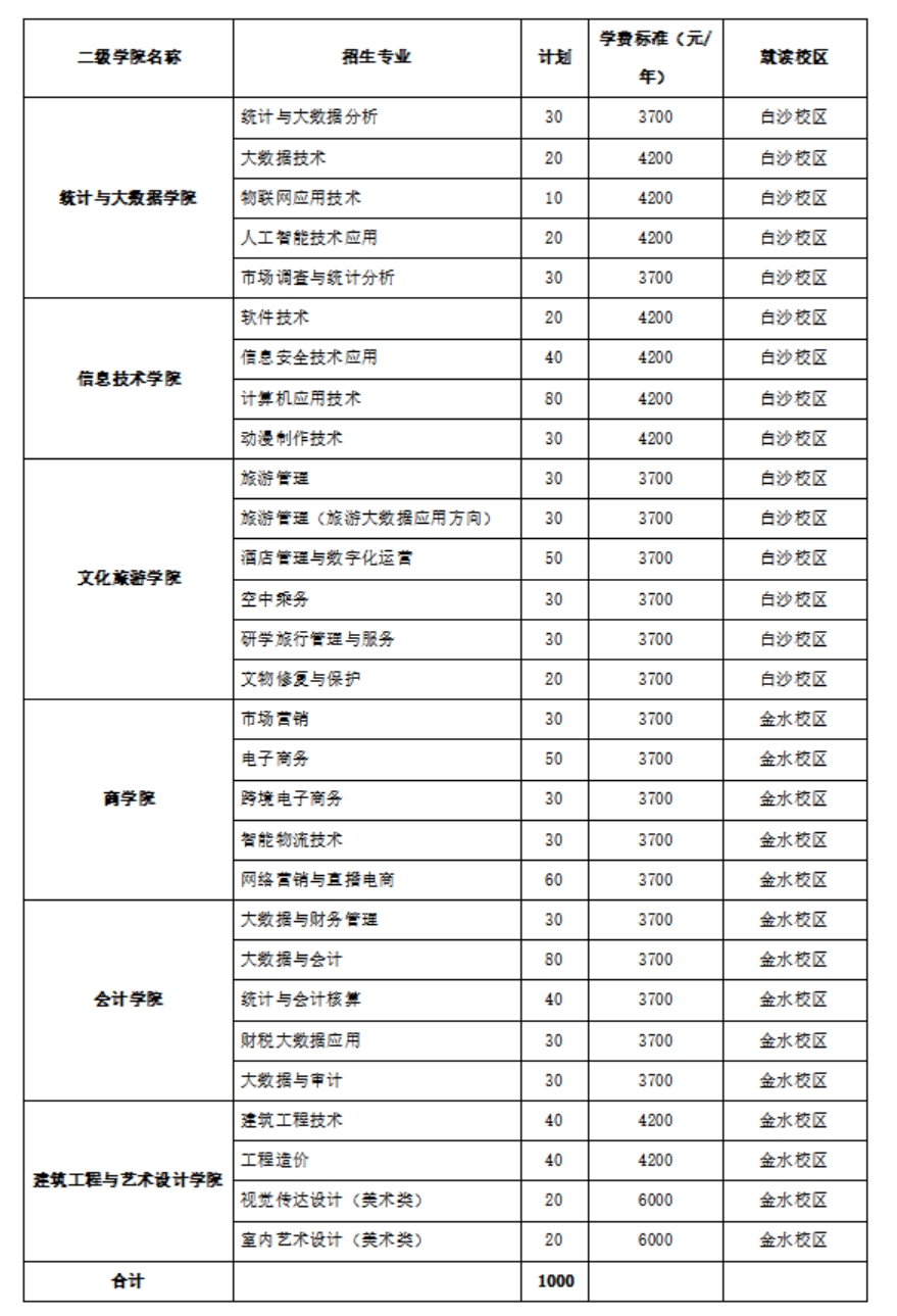 第十条 招生计划:根据学校发展规划、办学条件、生源状况、毕业生就业状况等因素,会同相关职能部门制定2023年单招计划及分专业招生计划,经学校单独招生委员会审定后,报省教育厅备案。我校高职单独招生29个专业(含方向)共1000人。具体专业招生计划分配详见《2023年河南信息统计职业学校单独招生计划》,学校根据省教育厅单招章程审定结果,将单招的分专业计划通过相关渠道向社会公布。