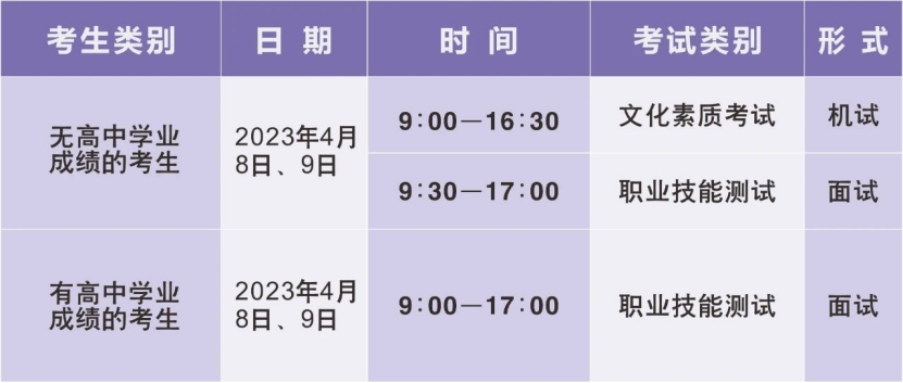 2.对于无高中学业水平考试成绩的考生,文化素质测试成绩取自机试满分100分,职业技能测试取自面试成绩200分。