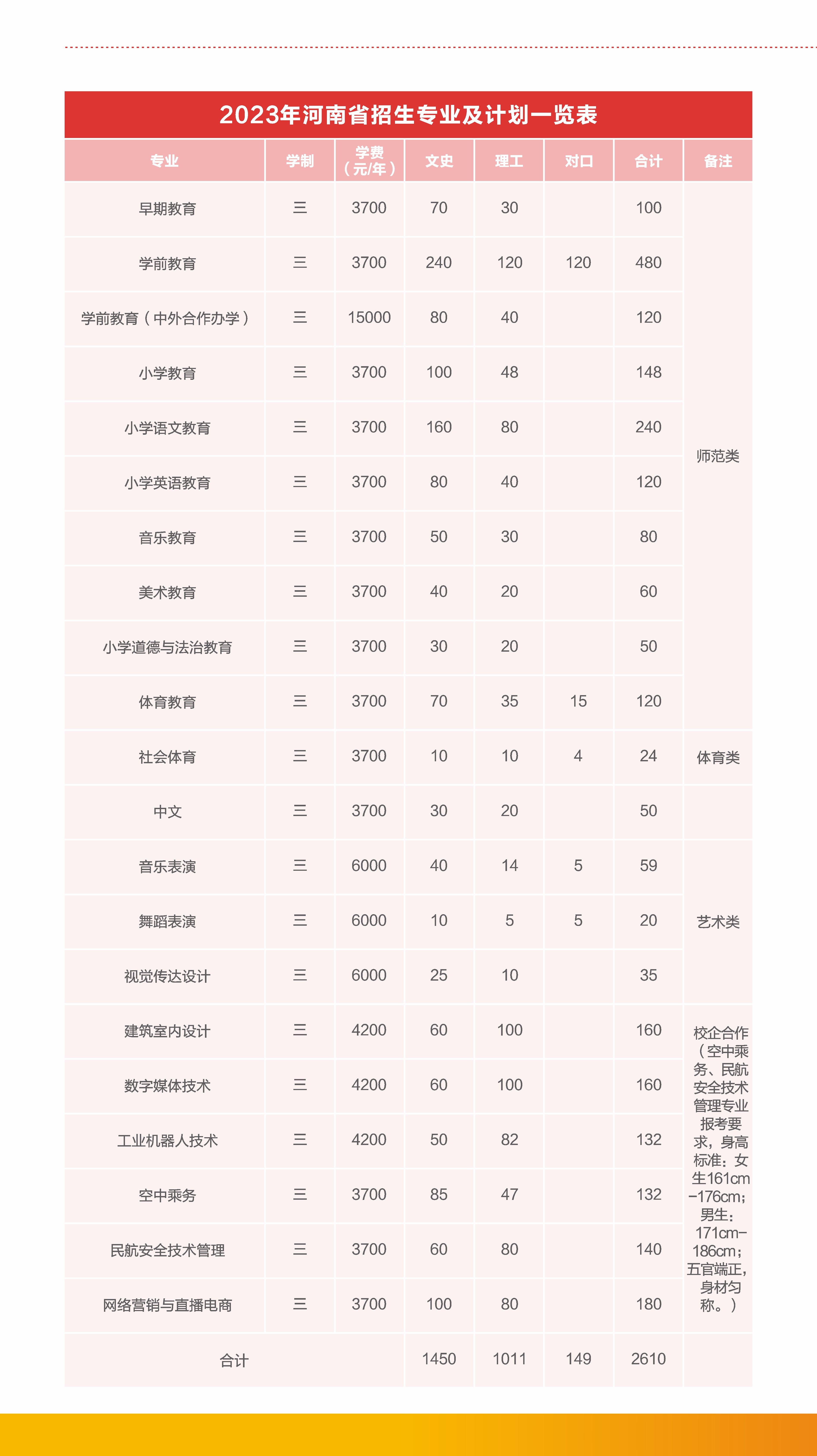 2023年 : 安阳幼儿师范高等专科学校-2023年河南省招生专业及计划一览表