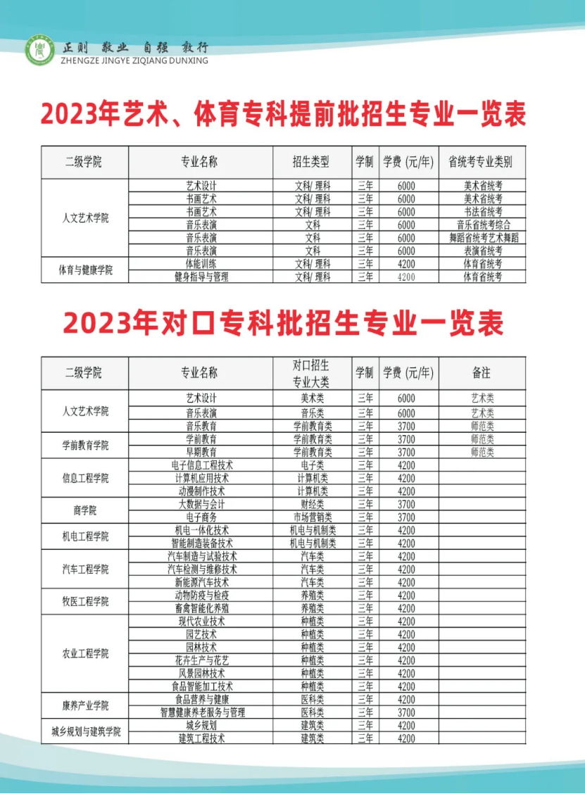 2023年 : 南阳农业职业学院-2023年普通专科招生简章