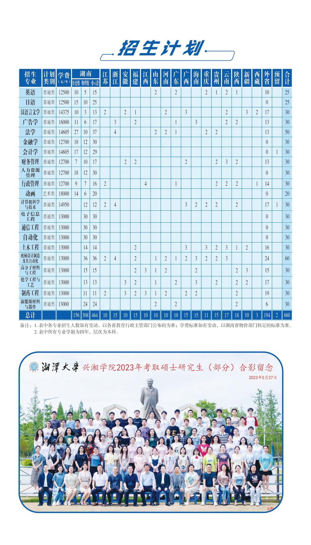 2023年 : 湘潭大学兴湘学院-2023年分省分专业招生计划明细