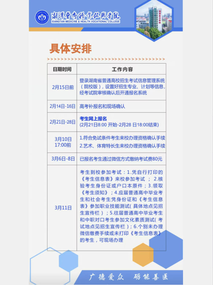 • 湘潭医卫职业技术学院-2023年单独招生简章