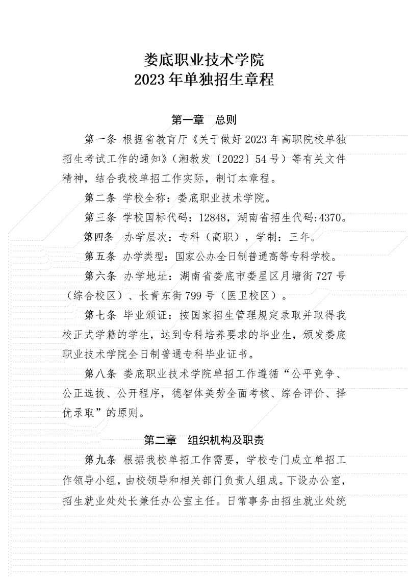 2023年 : 娄底职业技术学院-2023年单独招生章程