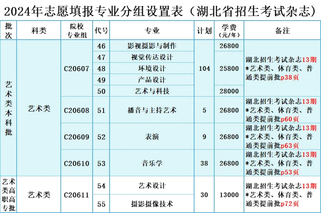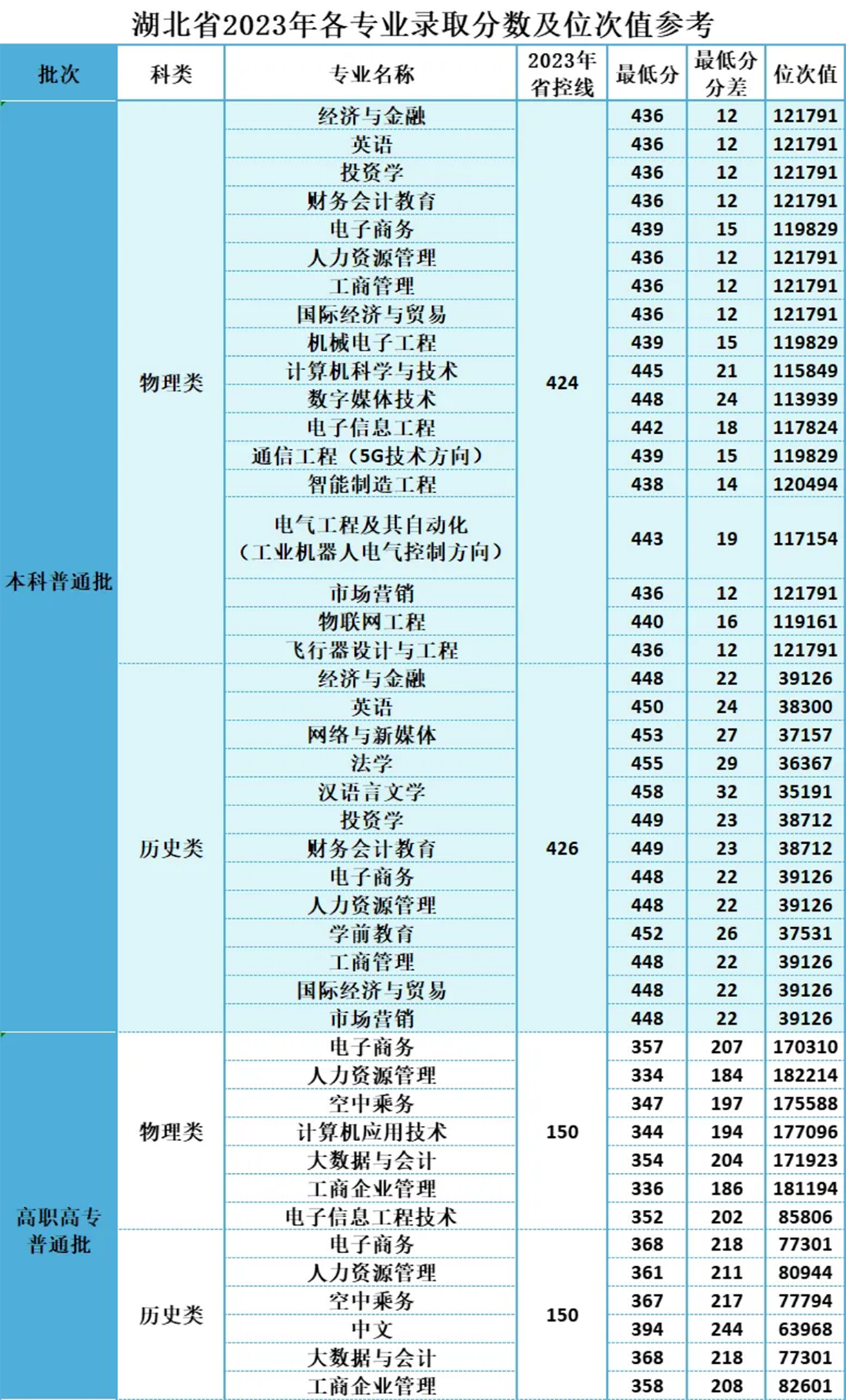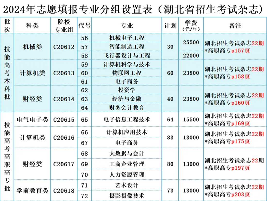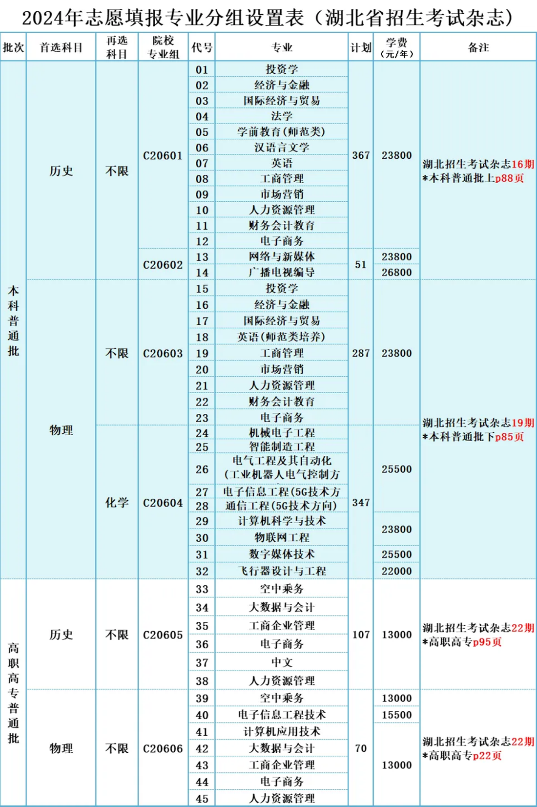 2024年《湖北招生考试》汉口学院专业代码及分数参考
