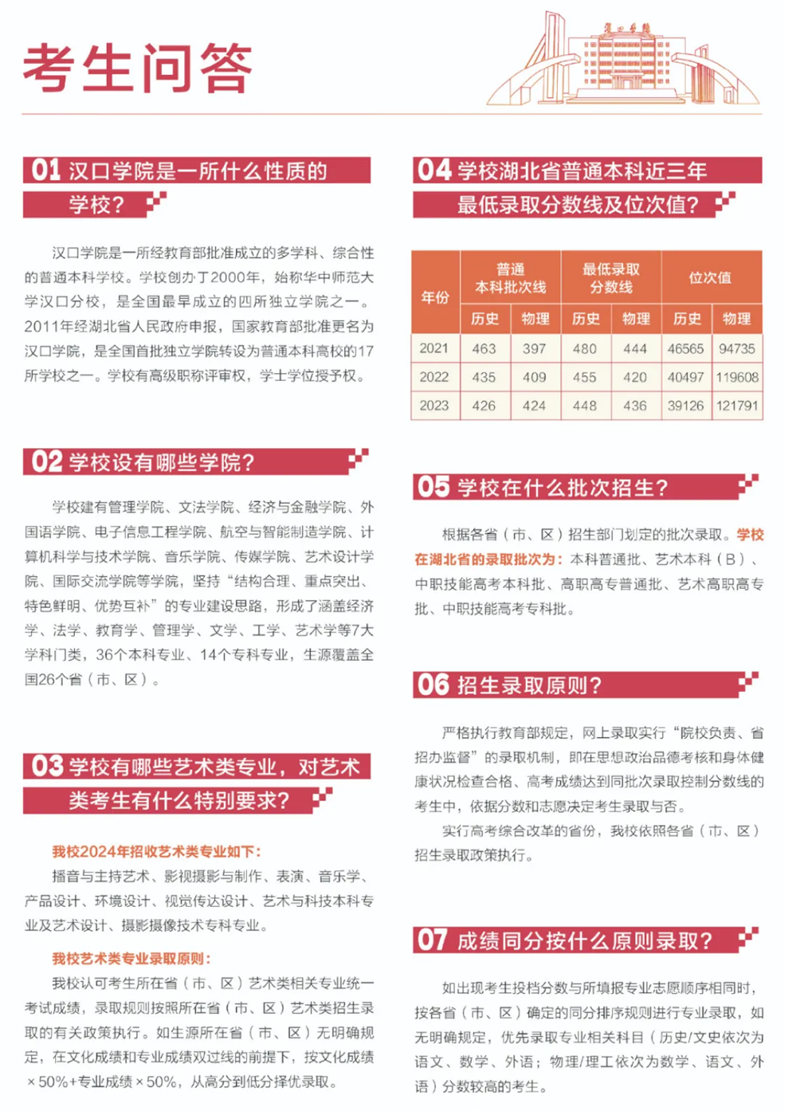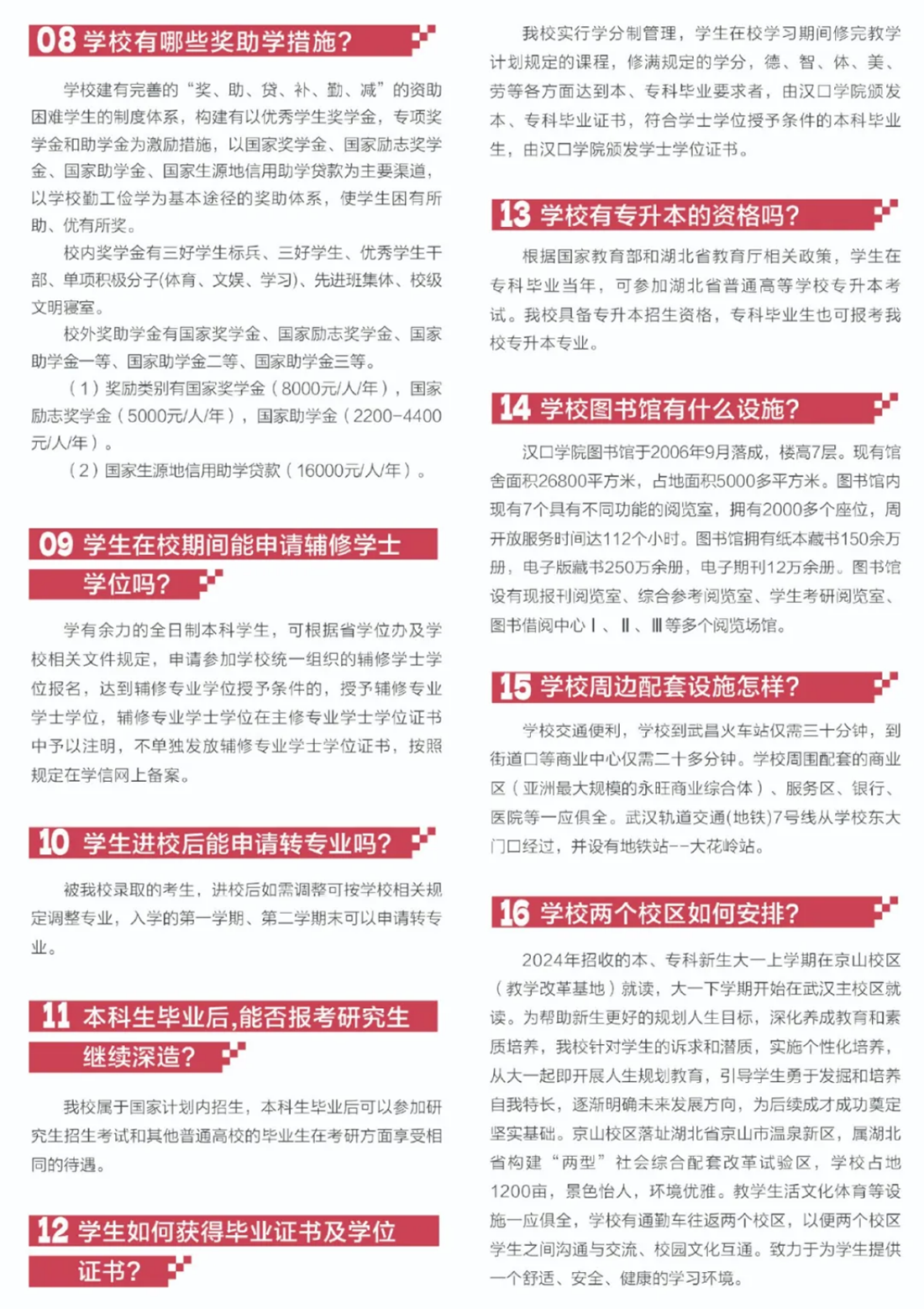 2024年 : 汉口学院-2024年招生简章(汉口学院2024年考生问答)