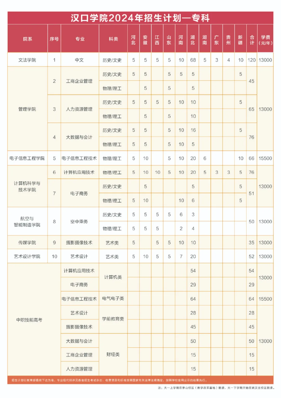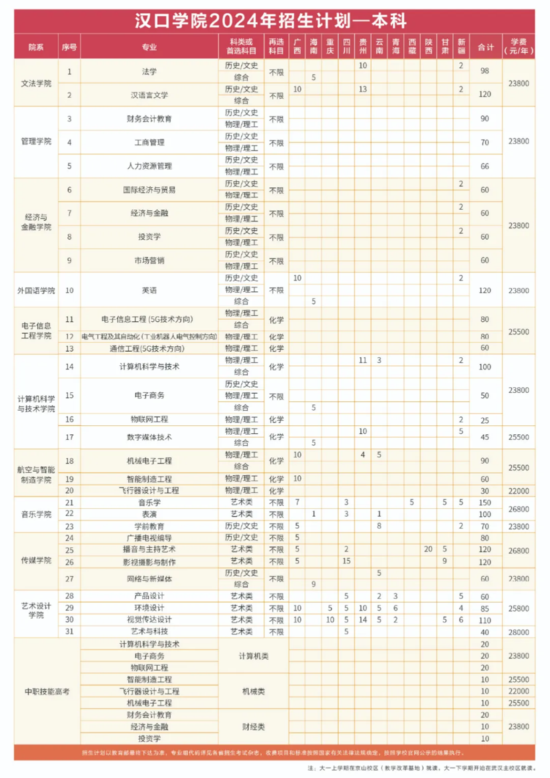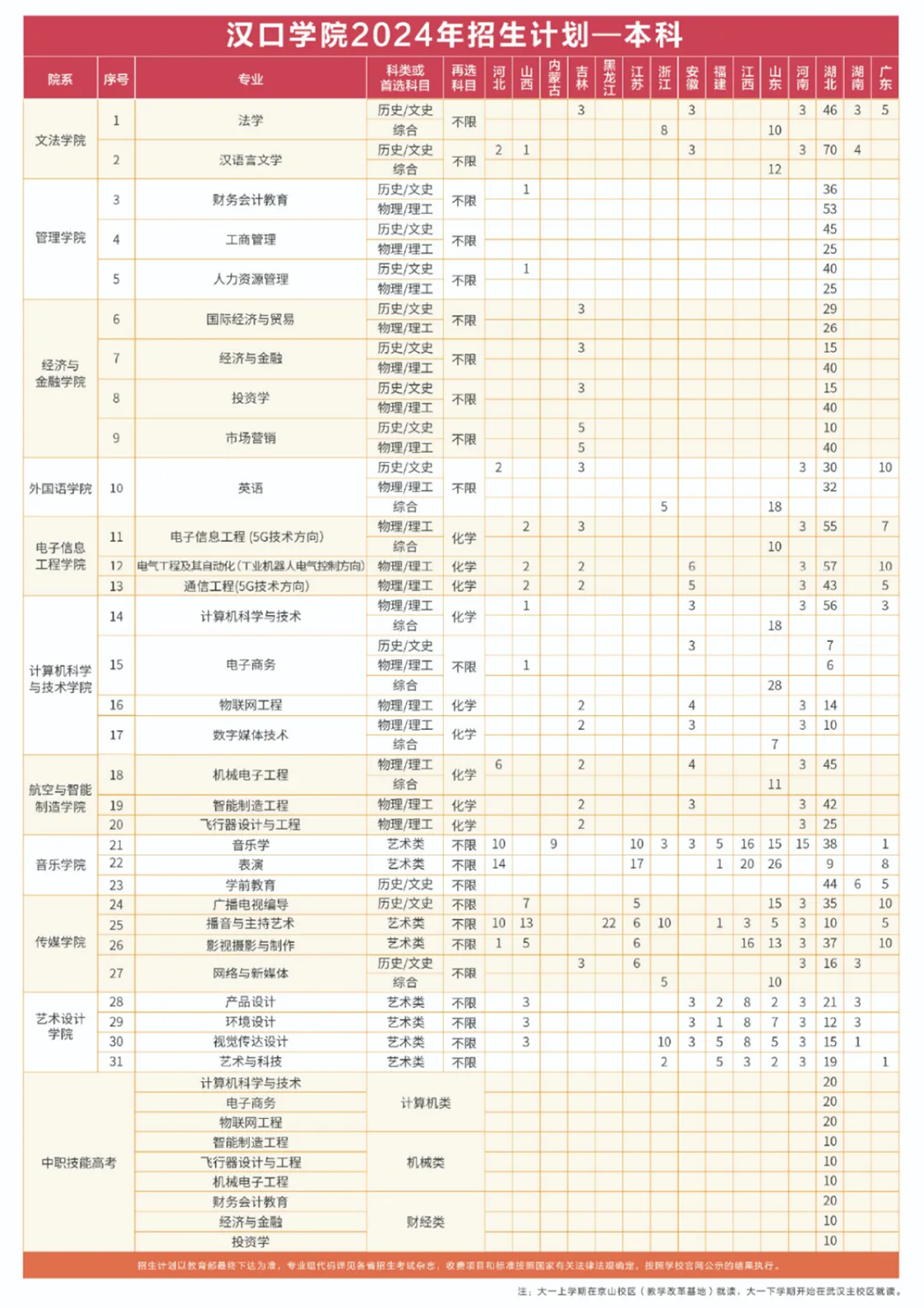 2024年 : 汉口学院-2024年招生计划 - 本科 / 专科