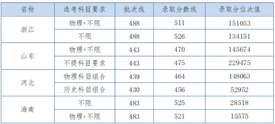 (部分省份2024年实行新高考改革,往年分数仅供参考)