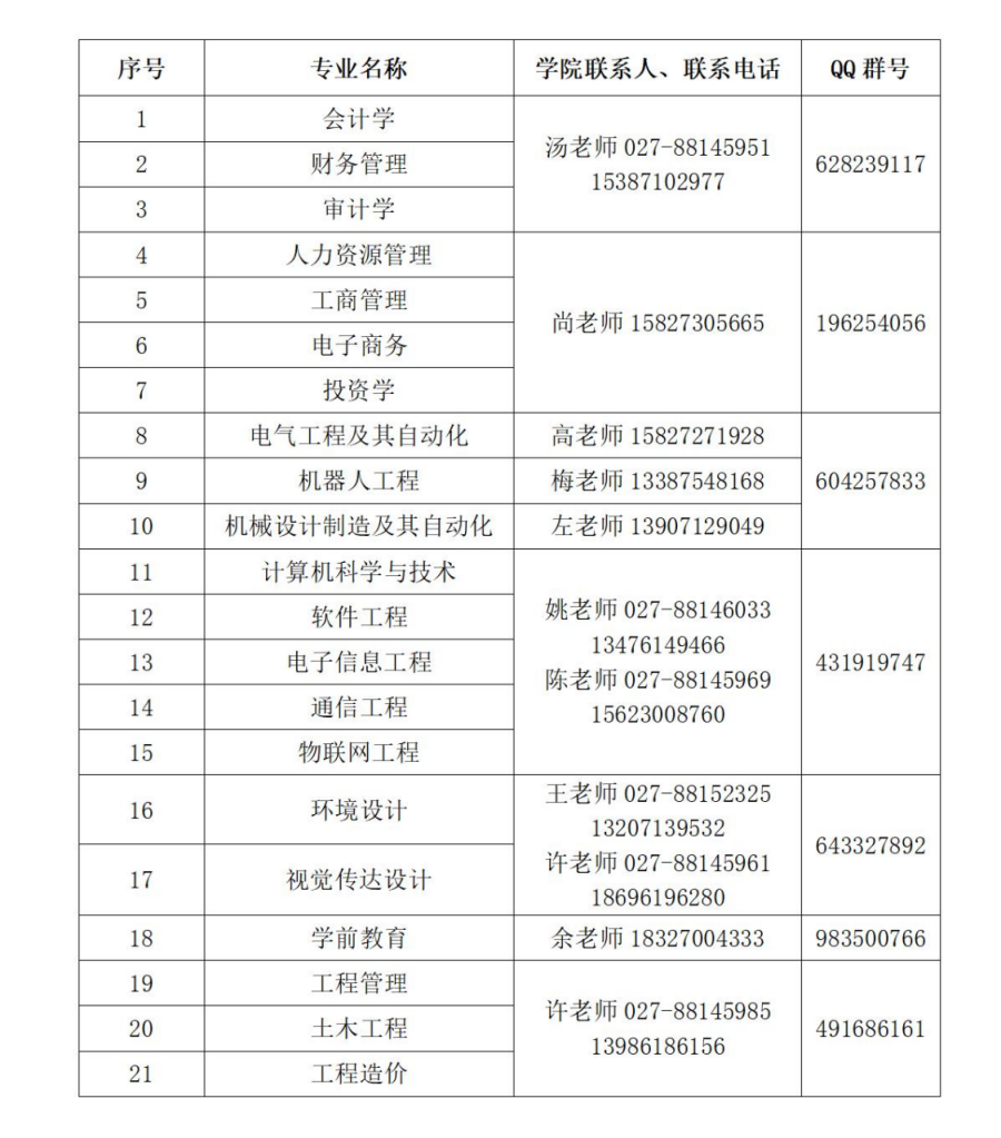 附表:武昌工学院2023年普通专升本各专业招生咨询方式