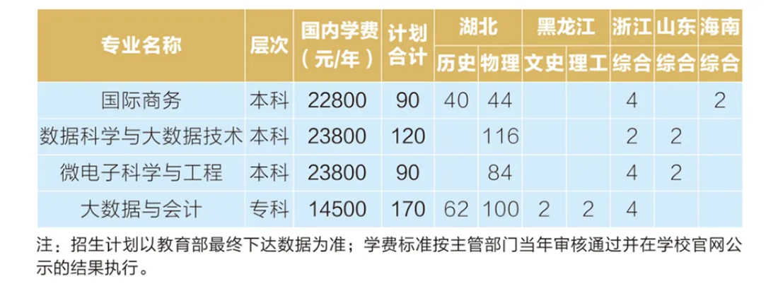 1.国际商务、微电子科学与工程、数据科学与大数据技术:中外校际交流项目,本科,外语语种要求为英语,无单科分数要求,只招填报中外校际交流项目专业的考生,不调剂录取服从志愿考生,不得转出至普通专业。2.大数据与会计:中韩校际交流项目,专科,外语语种不限,无单科分数要求。只招填报该专业的考生,不调剂录取服从志愿考生,不得转出至普通专业。