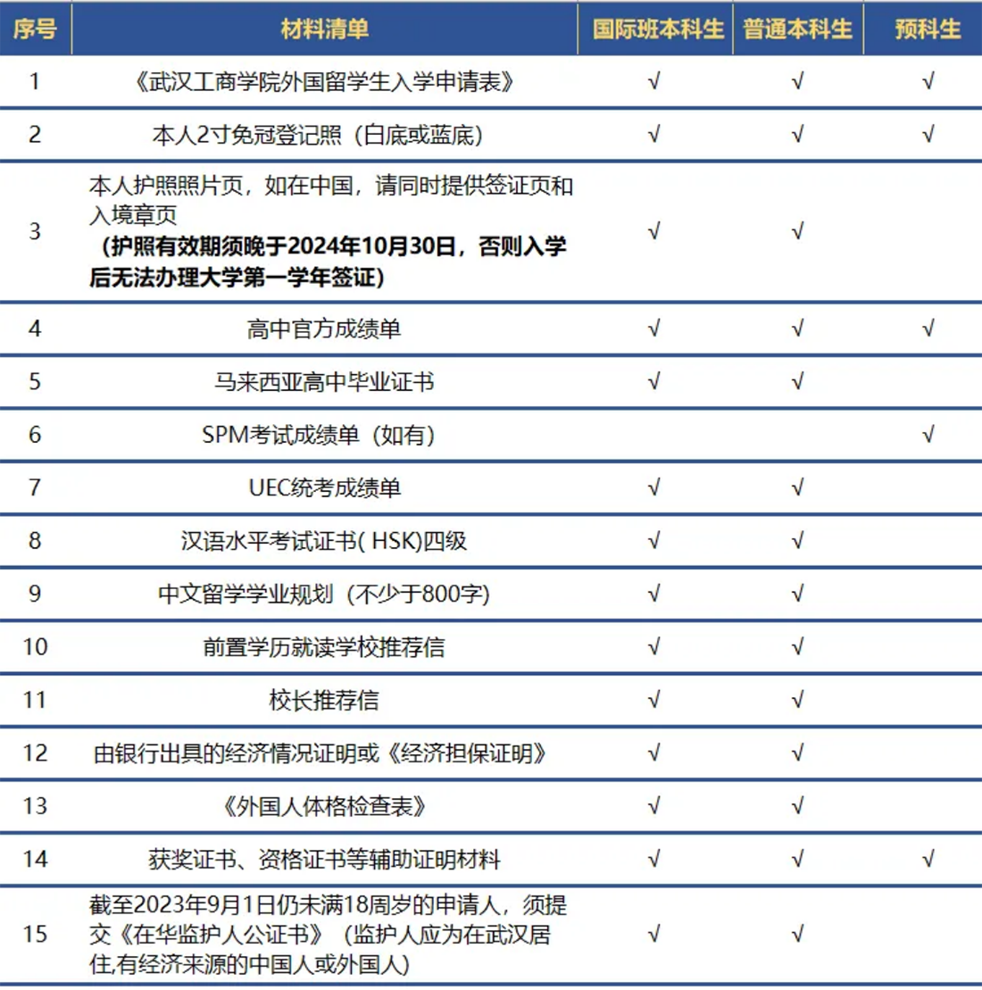 具有完整的高中(包括华文独中、国民中学、国民型中学)或同等学历,品学兼优、身体健康,愿意遵守中国法律法规和武汉工商学院规章制度,年龄不超过24岁(1998年12月31日后出生)的马来西亚公民,可申请报读我校。