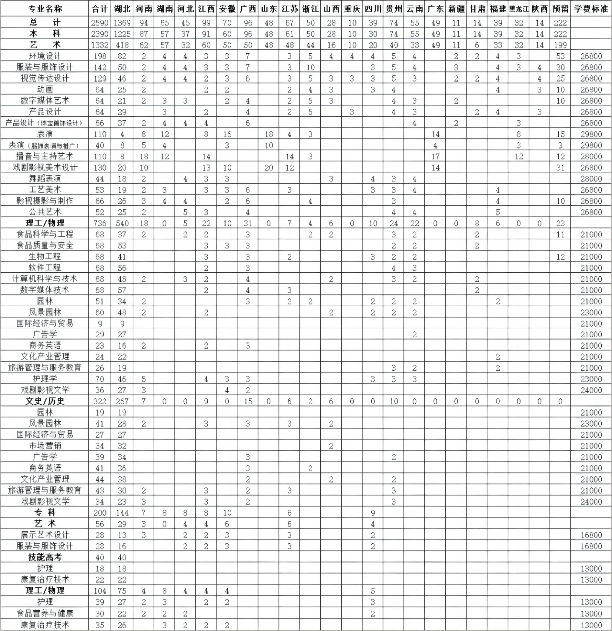 2021年 : 武汉设计工程学院-2021年分省分专业招生计划