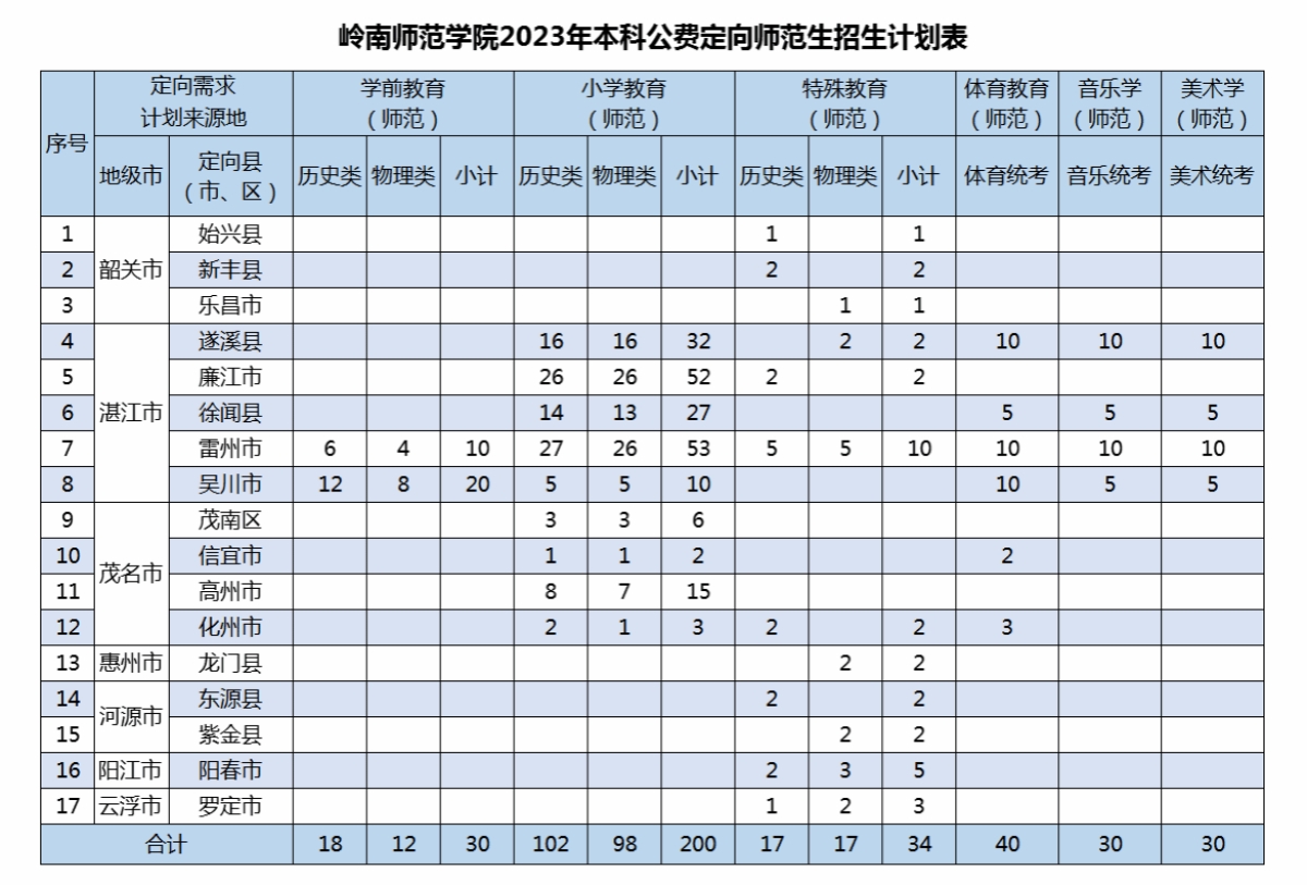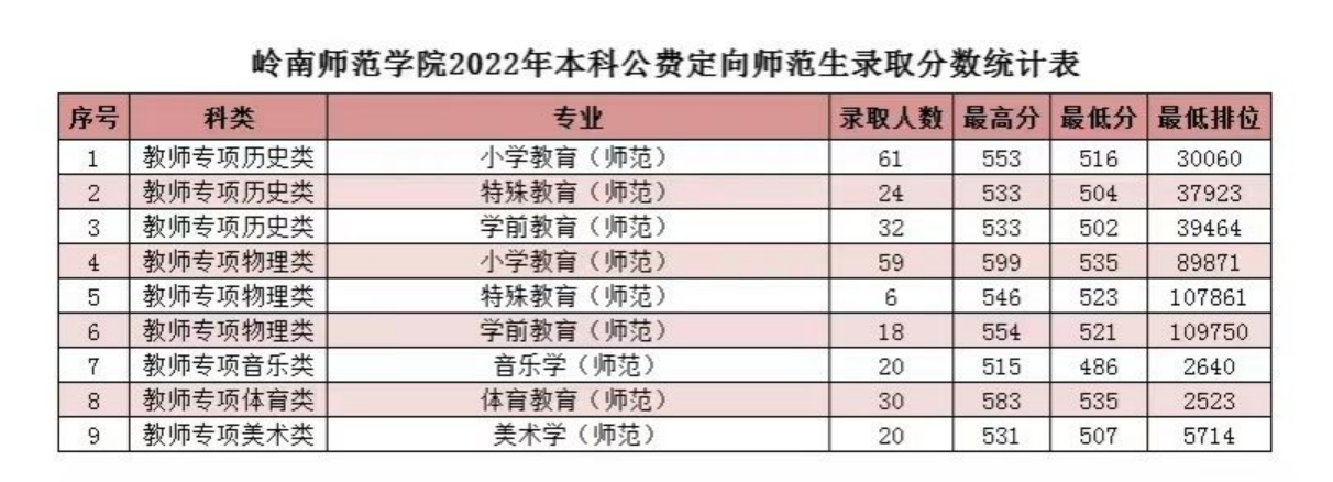 3.符合2023年度相应招考专业的报考条件,报考音乐、美术、体育类的考生,还需参加广东省普通高校招生统一考试的术科统考。高考成绩应达到2023年广东省招生委员会公布的公费定向培养教师专项计划录取最低分数线。