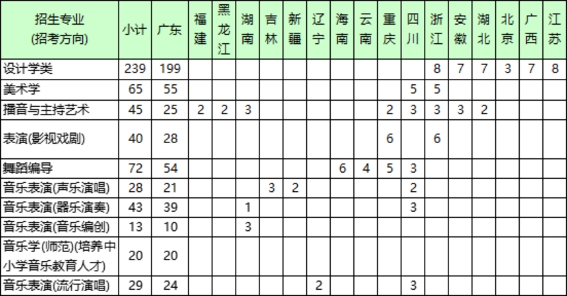 备注:1.表演(影视戏剧)专业在广东省按校考方式招生,其他各专业均在各招生省市按统考方式招生。
