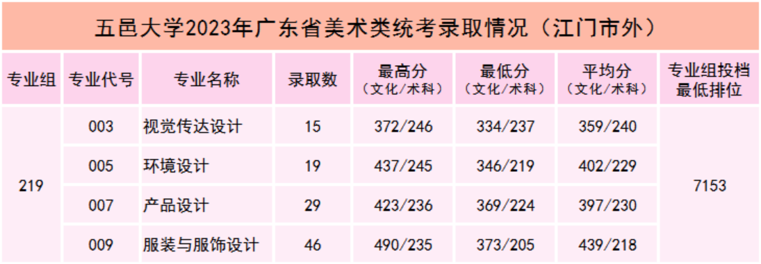 五邑大学2023年广东省美术类统考录取情况(江门市外)