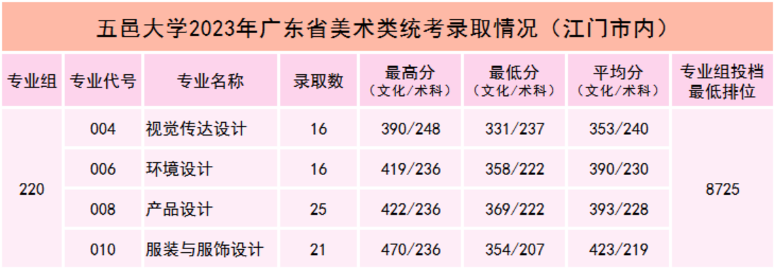 五邑大学2023年广东省美术类统考录取情况(江门市内)