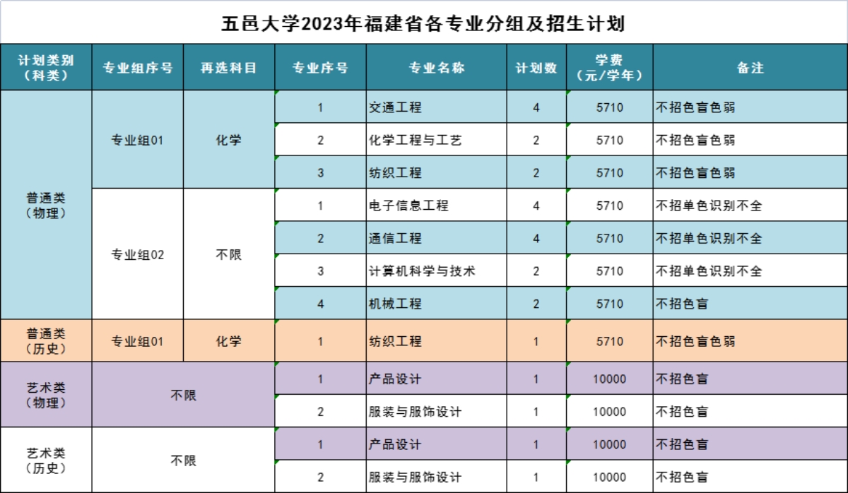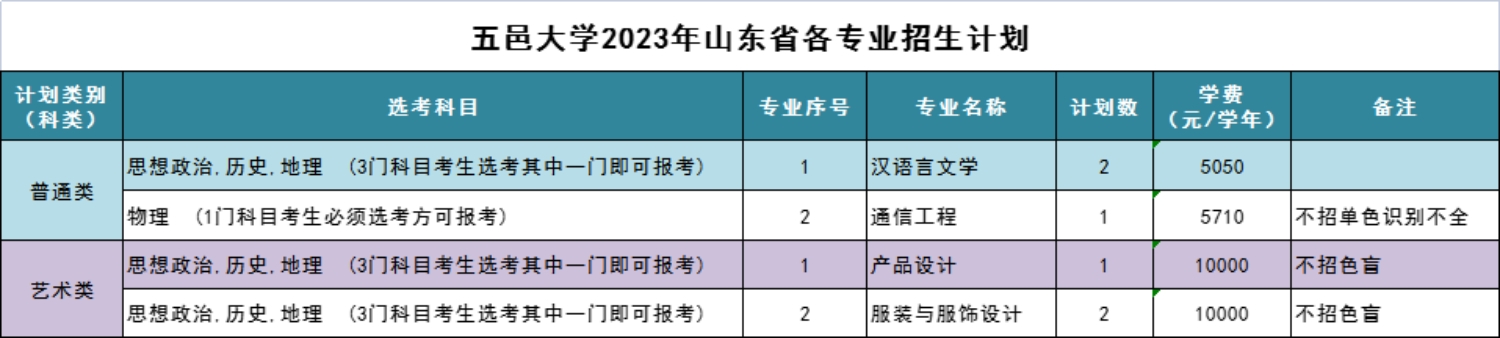 五邑大学2023年外省各省招生计划及高考改革省份选考科目情况