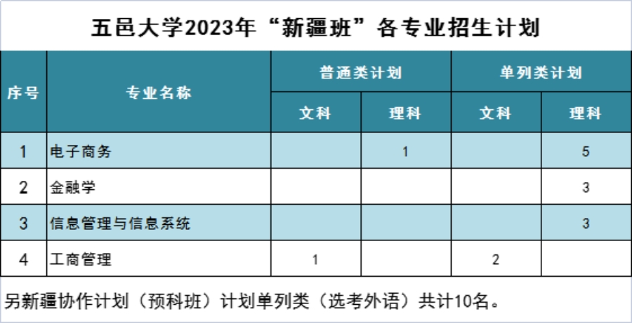 四、“新疆班”及新疆协作计划(预科班)招生计划:
