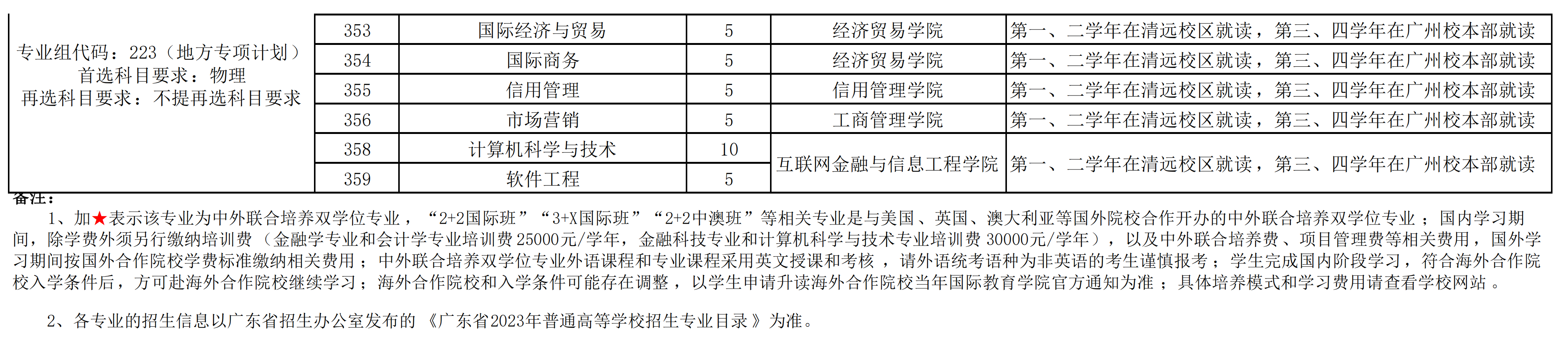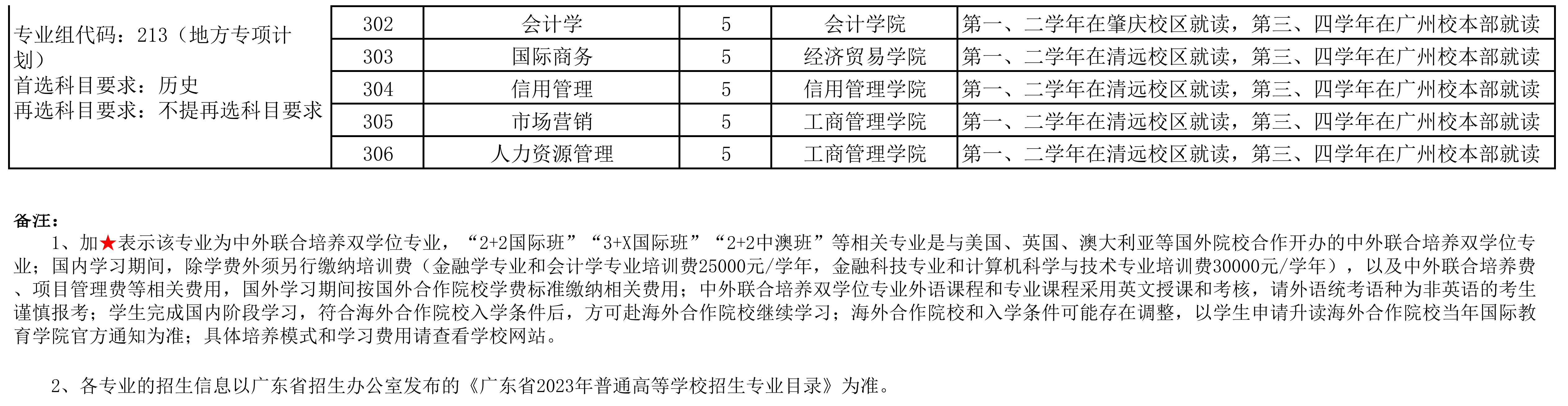 2、各专业的招生信息以广东省招生办公室发布的 《广东省2023年普通高等学校招生专业目录 》为准