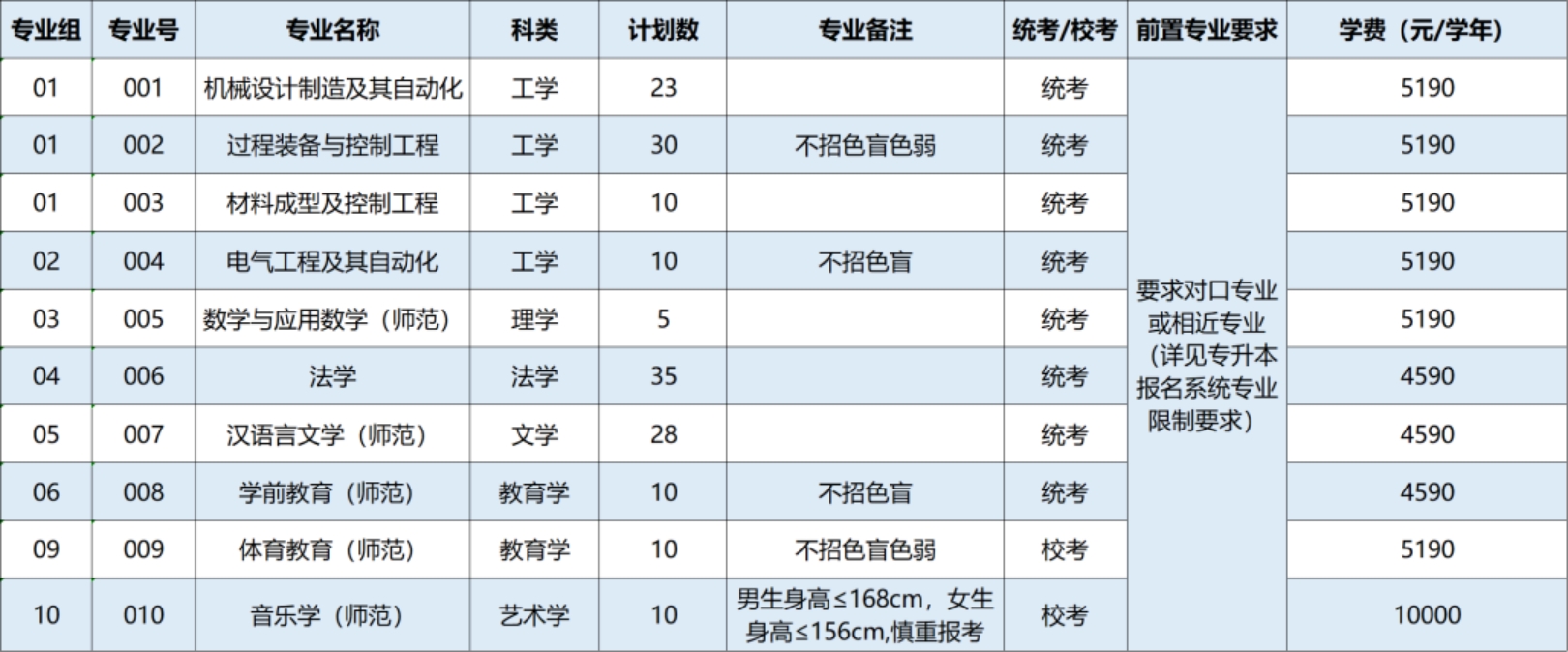 广东石油化工学院2023年普通专升本招生计划