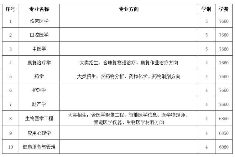 注:1.各招生专业的专业介绍请登陆我校招生信息网查阅。
