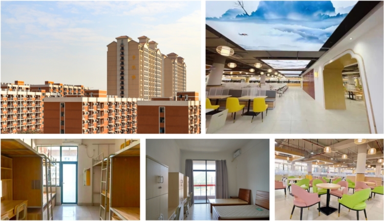 食宿环境:学校学生宿舍类型设有三人间、四人间及六人间,所有的宿舍都配备空调、饮水机、洗衣机、独立卫浴以及阳台。