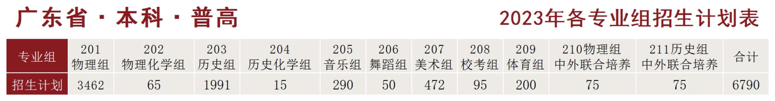 2023年学校普高本科招生计划7300人,其中广东省招生计划6790人,外省招生计划437人,预留计划73人。普高本科招生专业及方向共51个,面向广东、海南、广西、福建、湖南、贵州、重庆、四川、云南九个省(自治区、直辖市)招生。