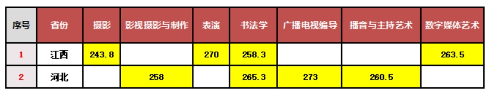 以下是华珠2022年分省分专业艺术类校考合格线,仅供参考。