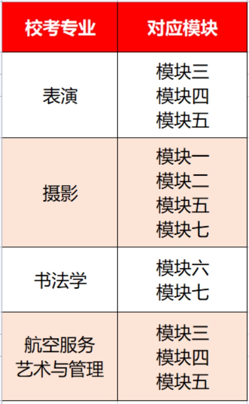 华珠校考专业在安徽省统考对应模块是怎样的?
