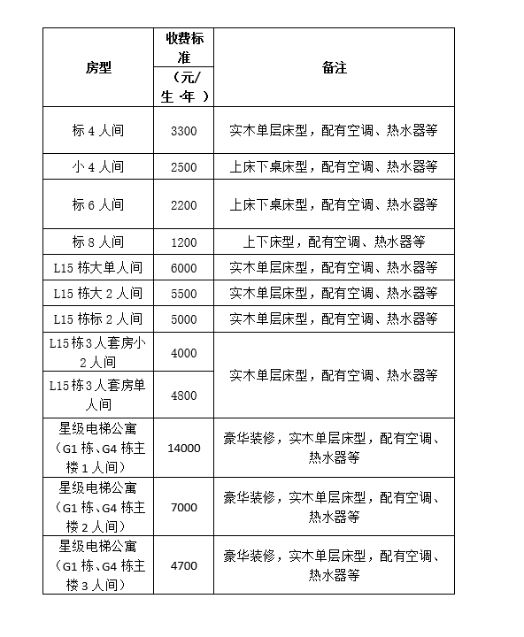 2021年 : 广州华立学院-2021年住宿费标准公布