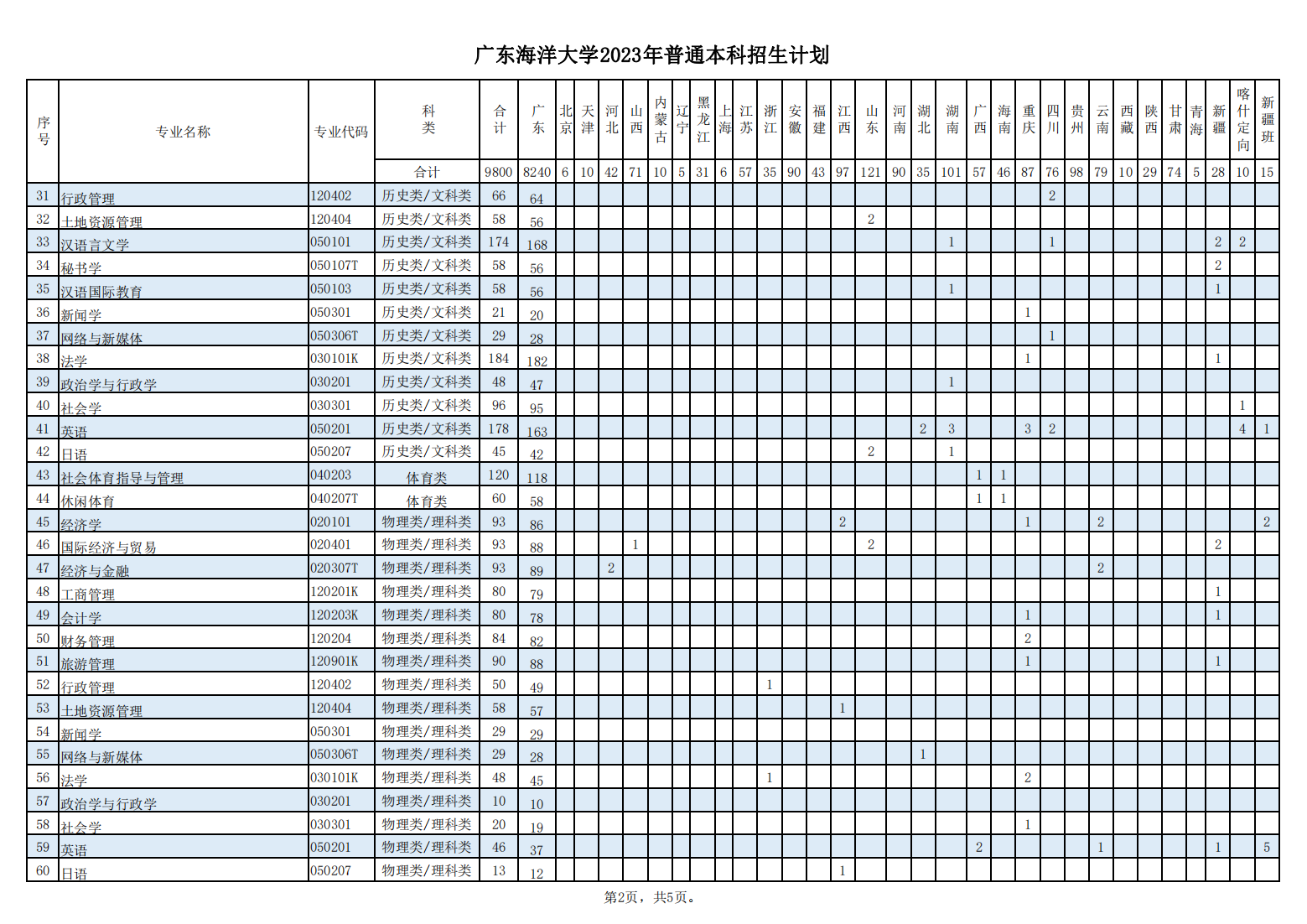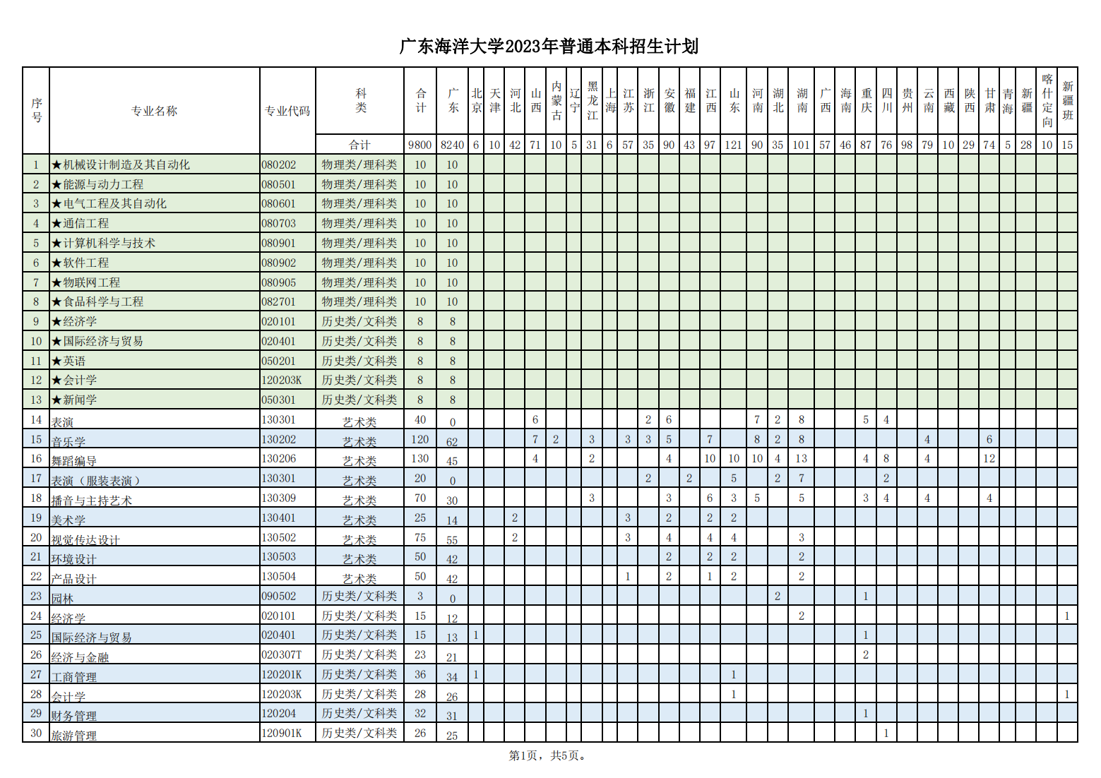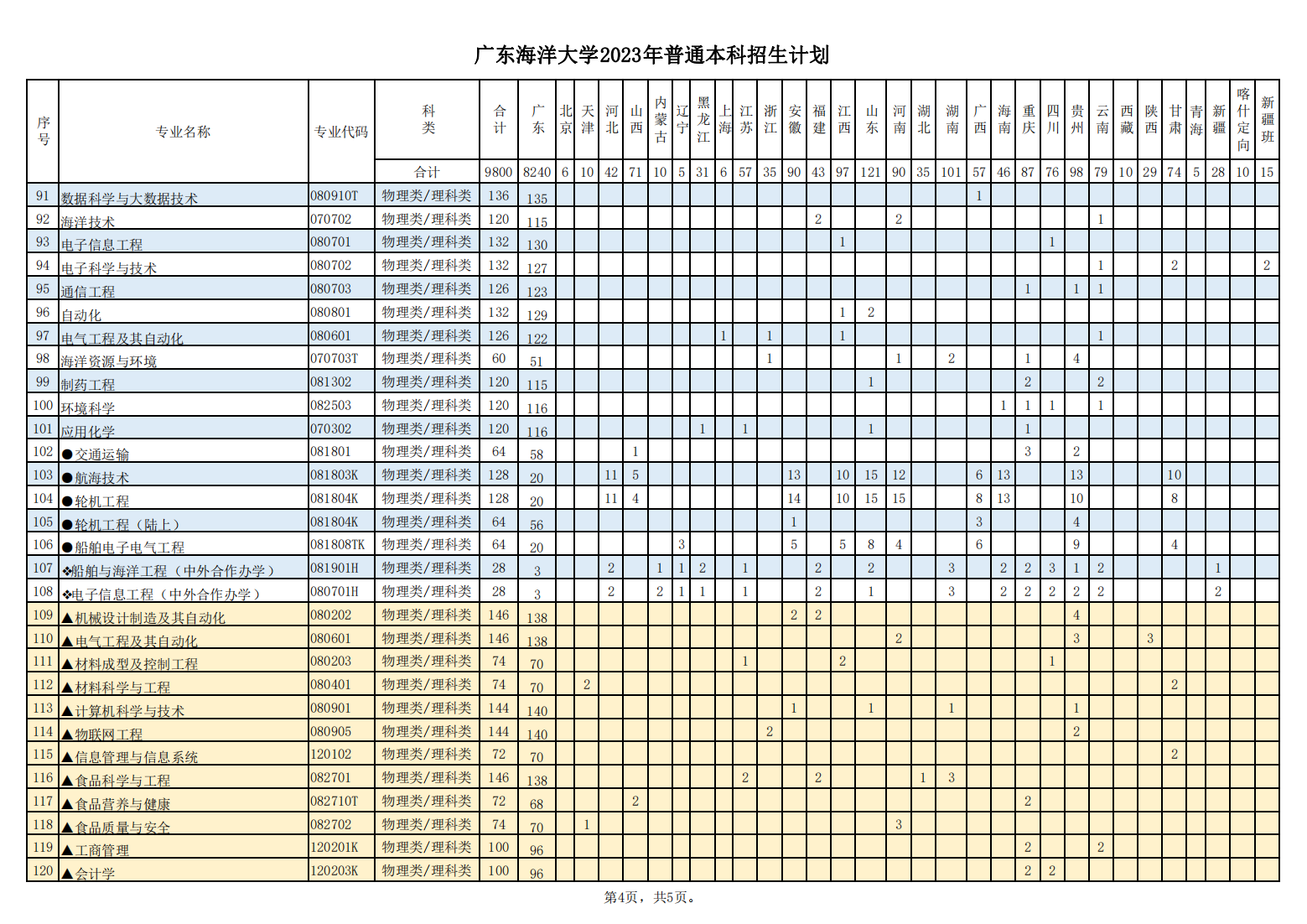 2023年 : 广东海洋大学2023年普通本科专业招生计划