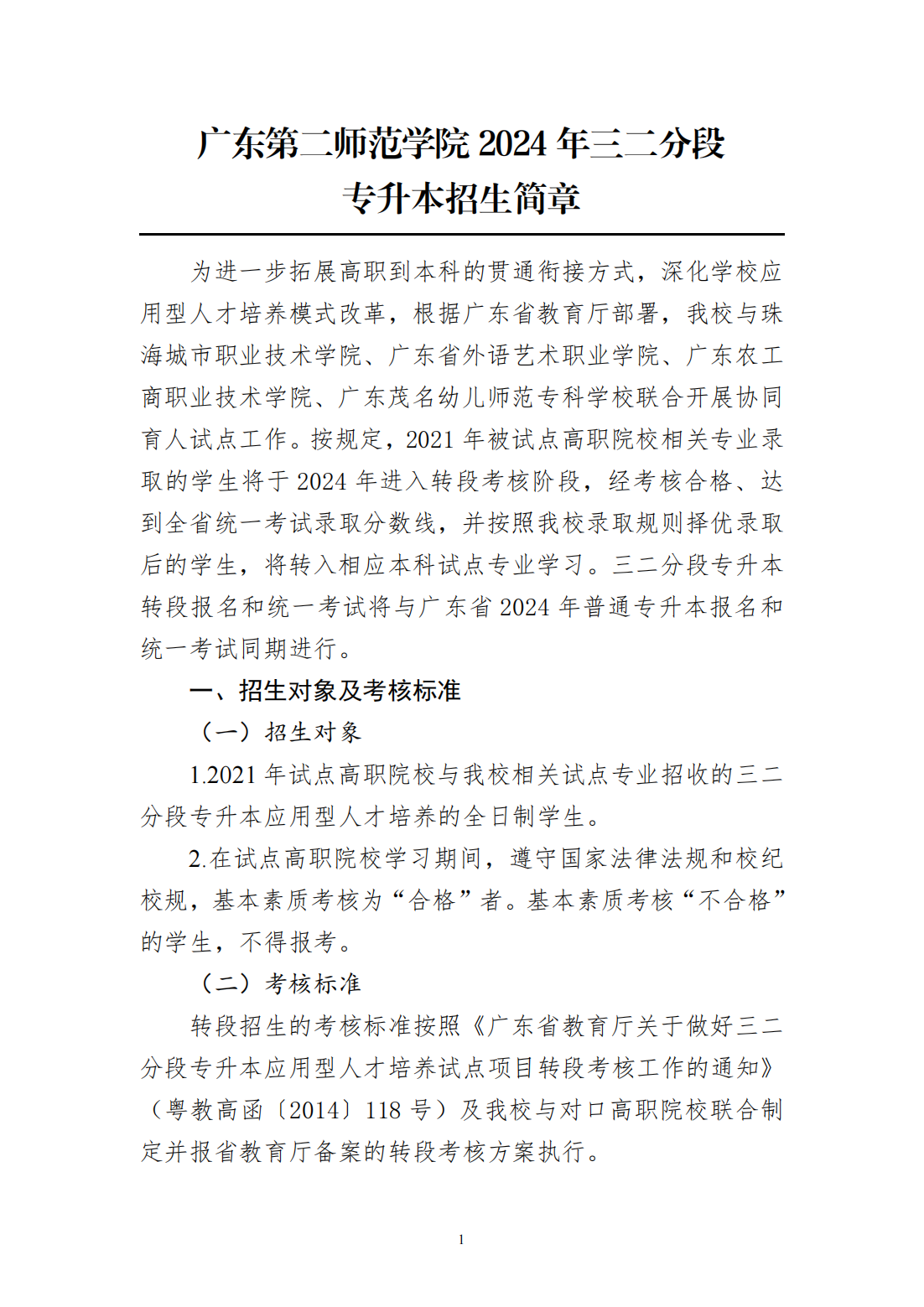 2024年 : 广东第二师范学院2024年三二分段专升本招生简章