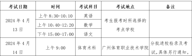 文化课考试的内容范围按教育部制定(2022年版)的义务教育《语文课程标准》、《数学课程标准》、《英语课程标准》要求执行,我校体育术科考试内容请关注我校招生网公布的术科考试评分标准(网址:http://zsb.gztzy.edu.cn)。