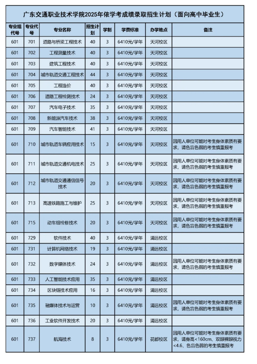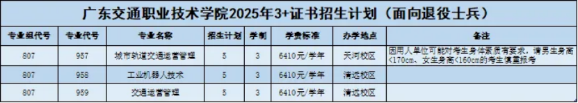 广东交通职业技术学院-2025年招生计划,广东交通职业技术学院2025年依学考成绩录取招生计划(面向高中毕业生)/ 广东交通职业技术学院2025年3+证书招生计划(面向中职毕业生)/ 广东交通职业技术学院2025年3+证书招生计划(面向退役士兵)