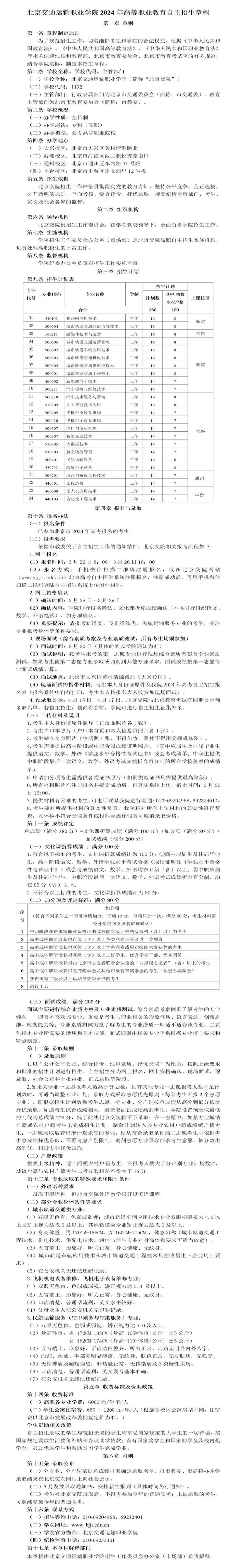 2024年 : 北京交通运输职业学院2024年高等职业教育自主招生章程