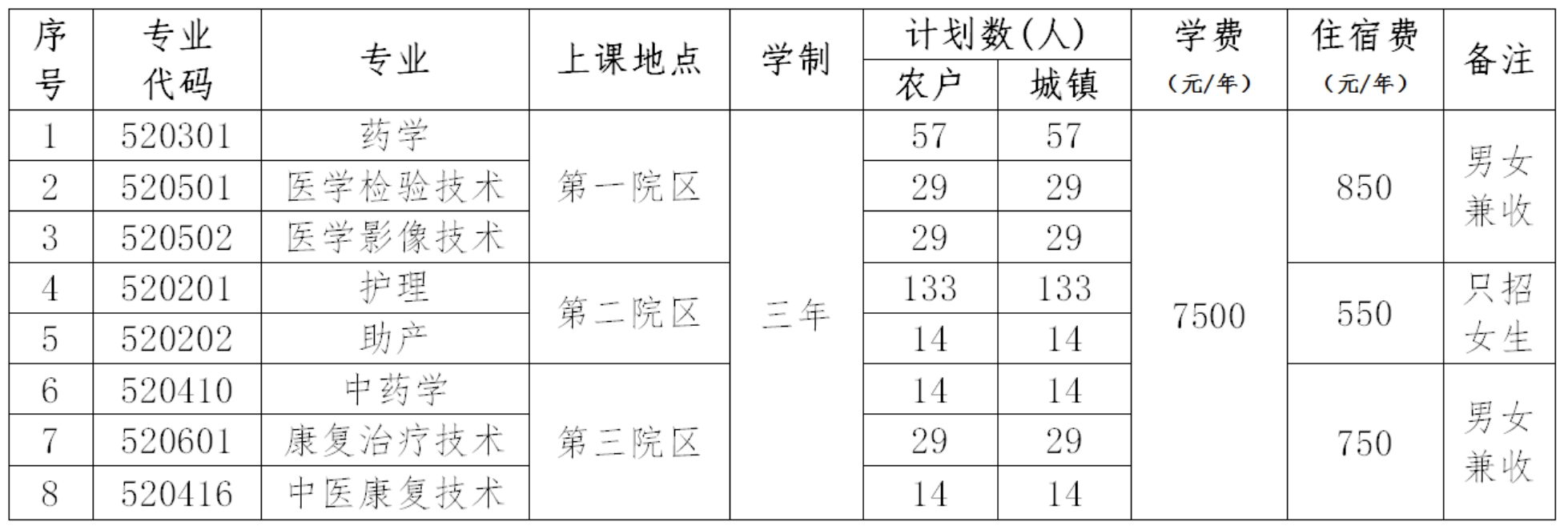 2.护理、助产专业只招收女生,身高低于1.55米者不宜报考。