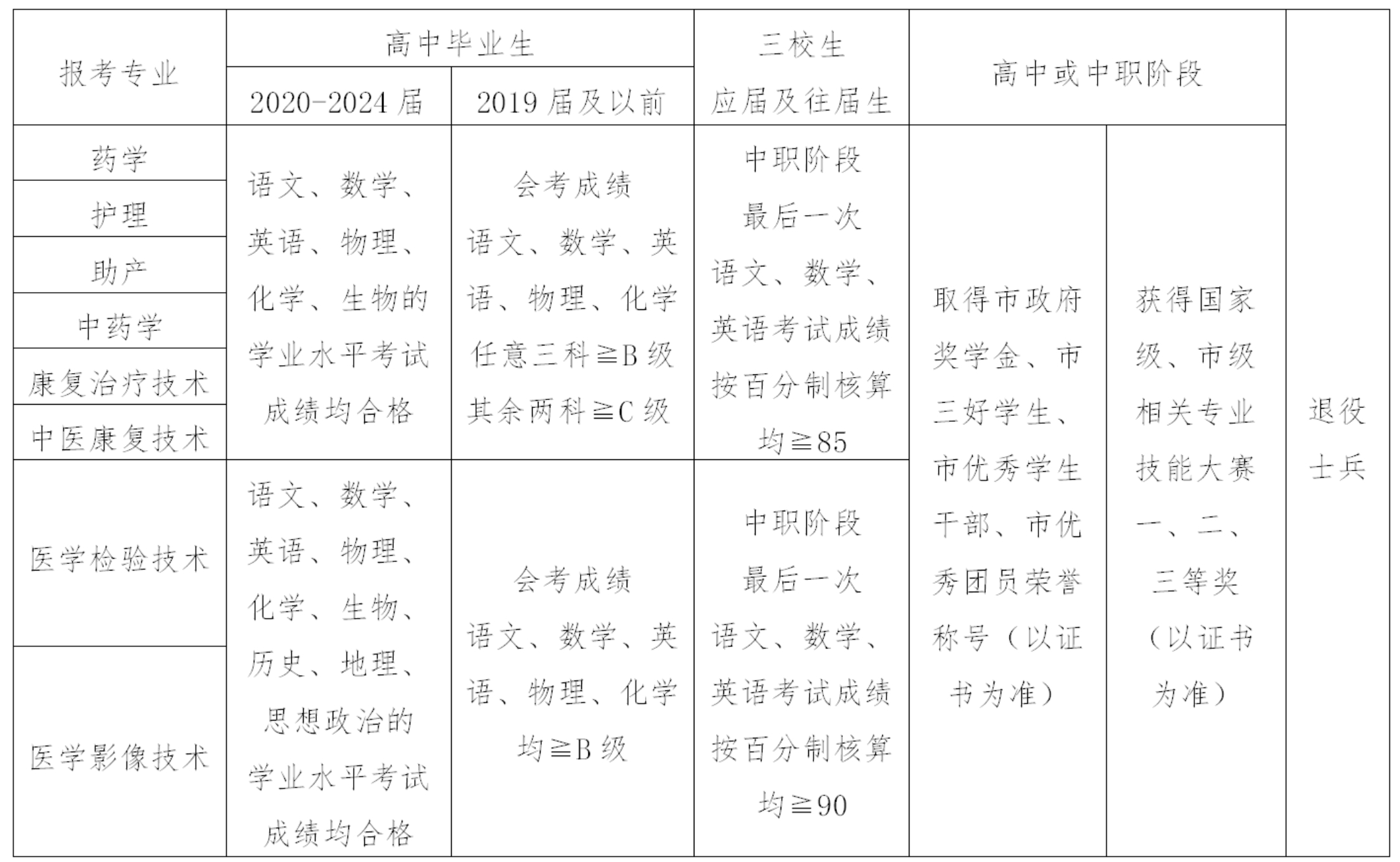 2.高中2019届及以前毕业生:高中会考成绩语文、数学、英语均在C级(含)及以上者;