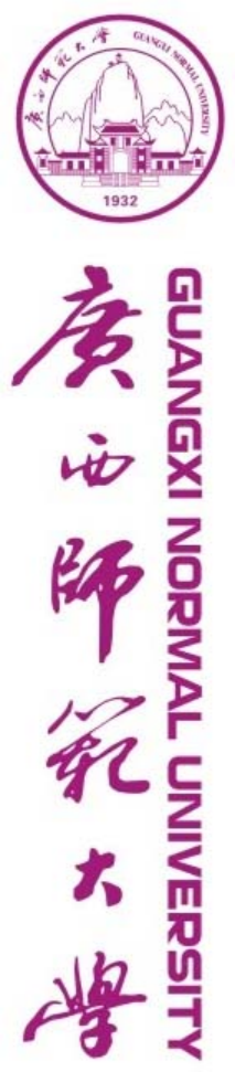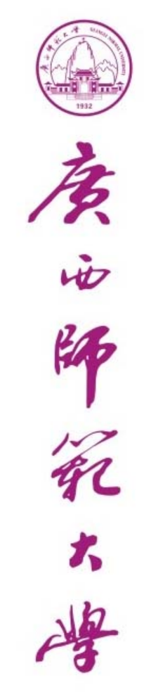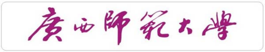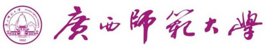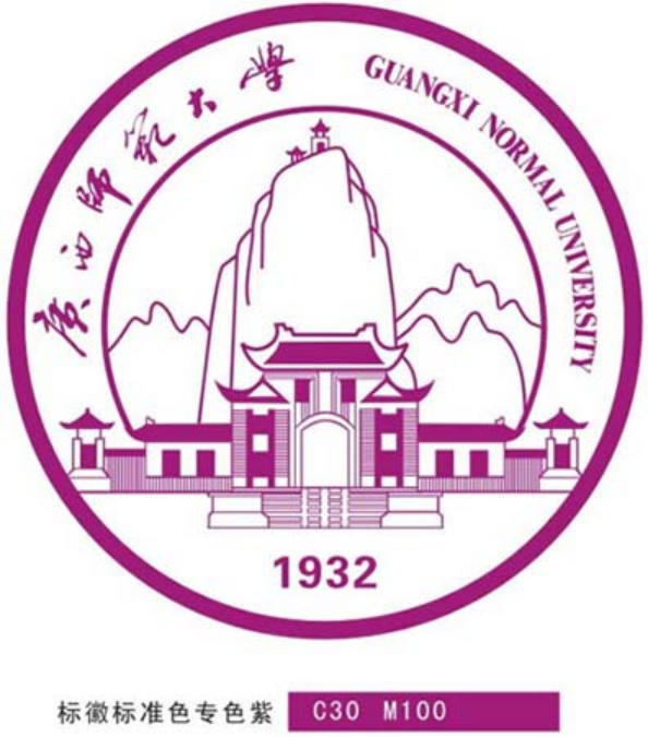 广西师范大学校标是双圆套圆形徽标,中间是由独秀峰和王城校区正门组成的图案,图案上方套内圆环,下方有“1932”字样,代表学校建校时间;外环左上方是由著名书法家、我校教授伍纯道题写的“广西师范大学”,外环右上方是“GUANGXI NORMAL UNIVERSITY”大写英文。