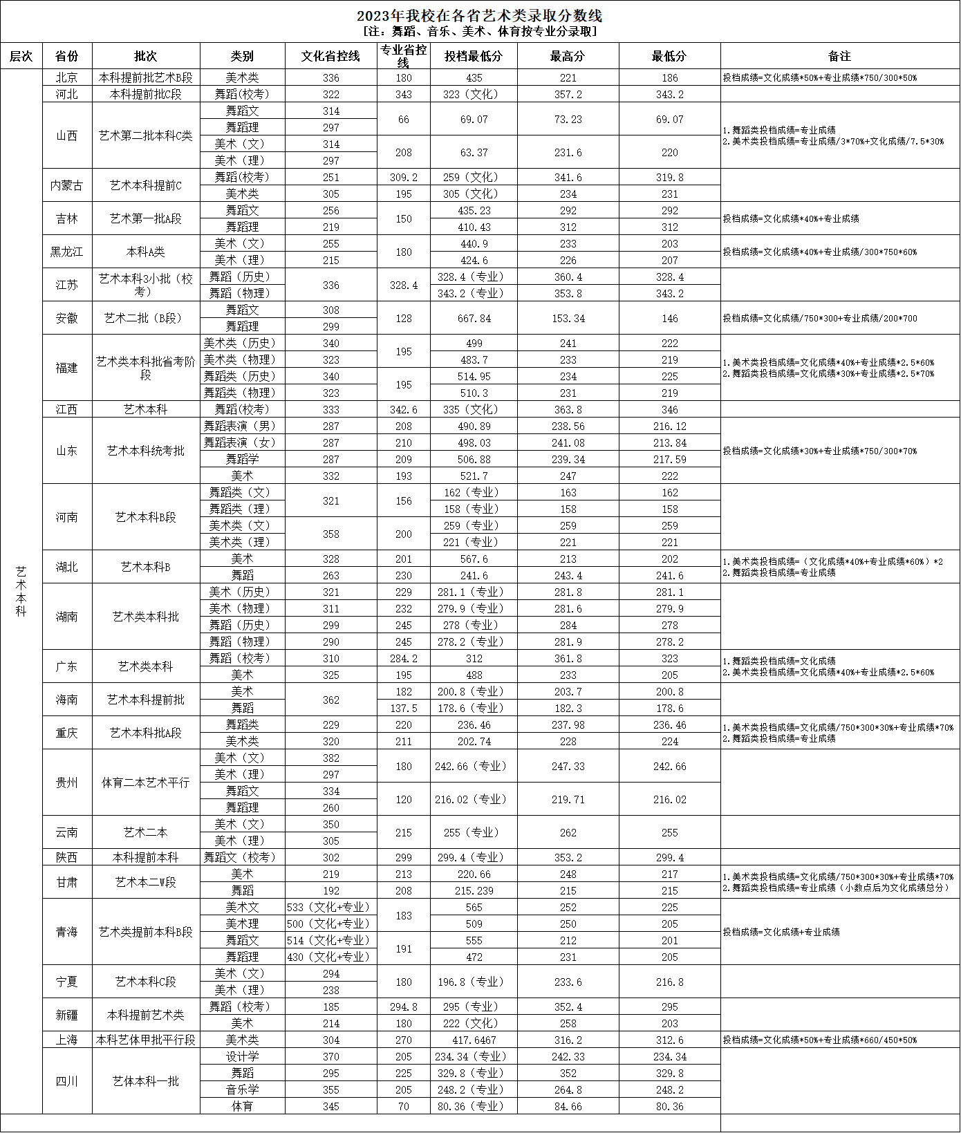 2023年 : 四川工商学院-2023年在各省艺术类录取分数线