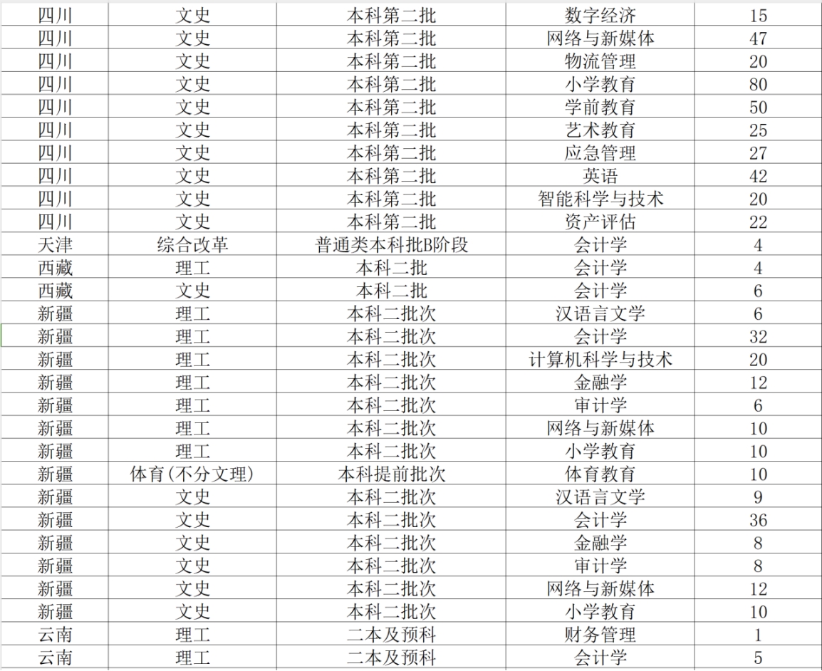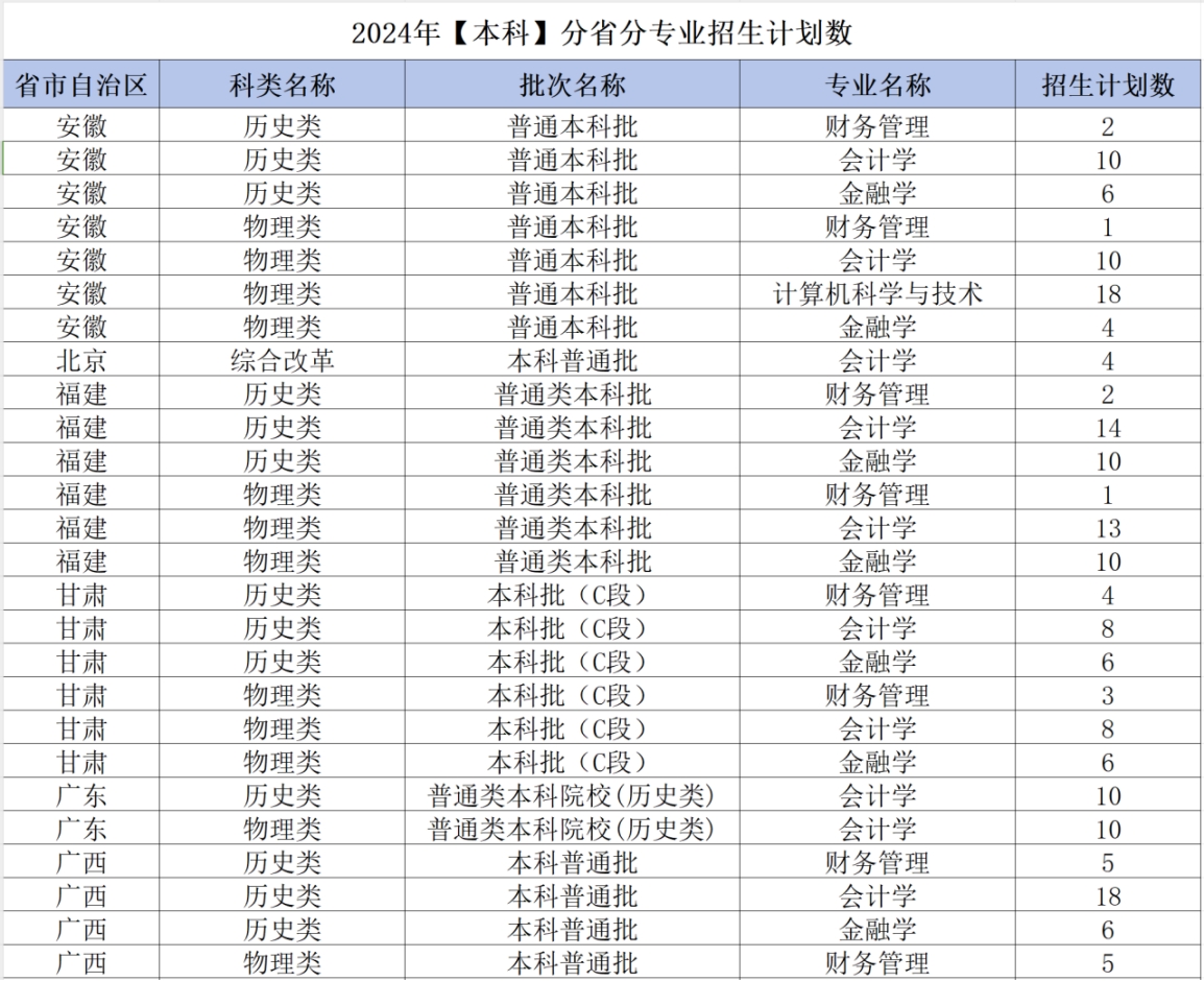 2024年 : 西南财经大学天府学院-2024年【非艺术类本科】分省分专业招生计划数