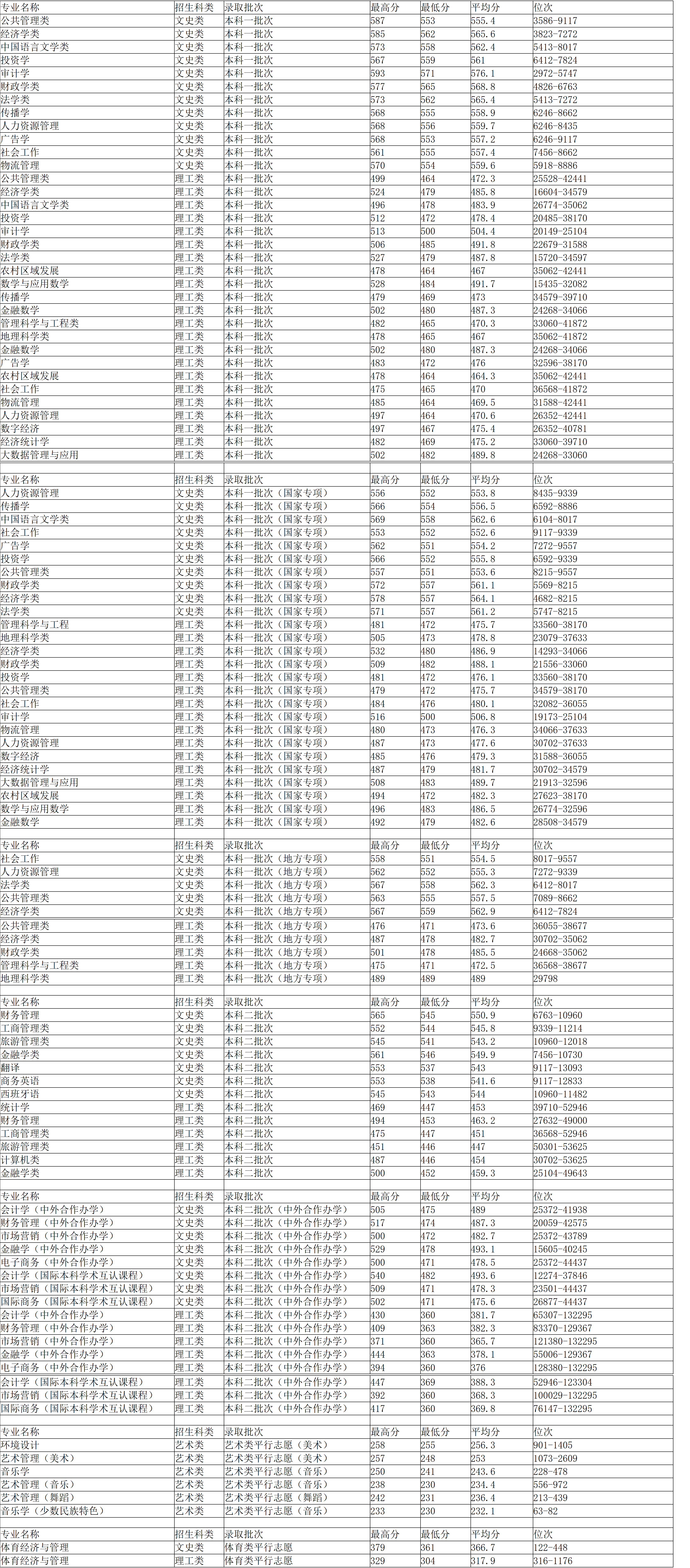 2022年 : 贵州财经大学-2022年贵州省分专业录取情况统计表